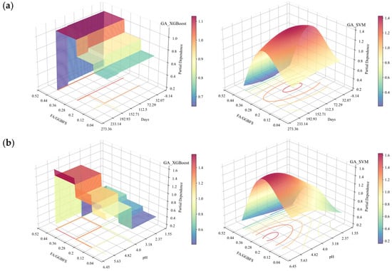 Although SHAP values effectively revealed how individual features influenced the predictions, they provided only limited insight into the overall impact of feature interactions. To address this gap, local SHAP analysis with partial dependence plots (PDPs) should be employed. The PDP illustrated the average marginal effect of each feature across its entire range, clearly showing how changes in one or two variables shifted the model’s output while implicitly capturing interaction patterns. This global perspective can deepen the understanding of feature influence and offer actionable guidance for both model refinement and targeted feature engineering.