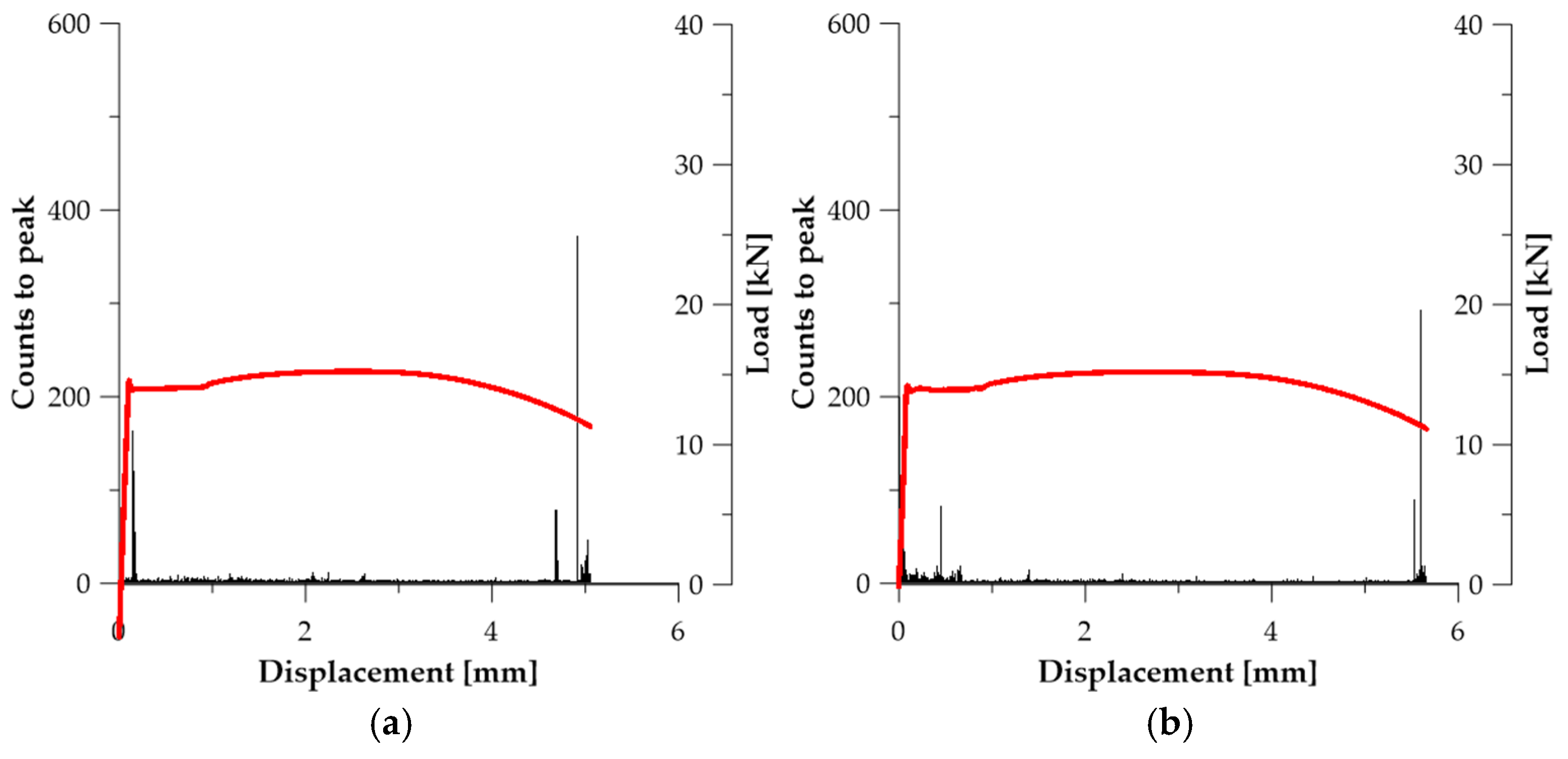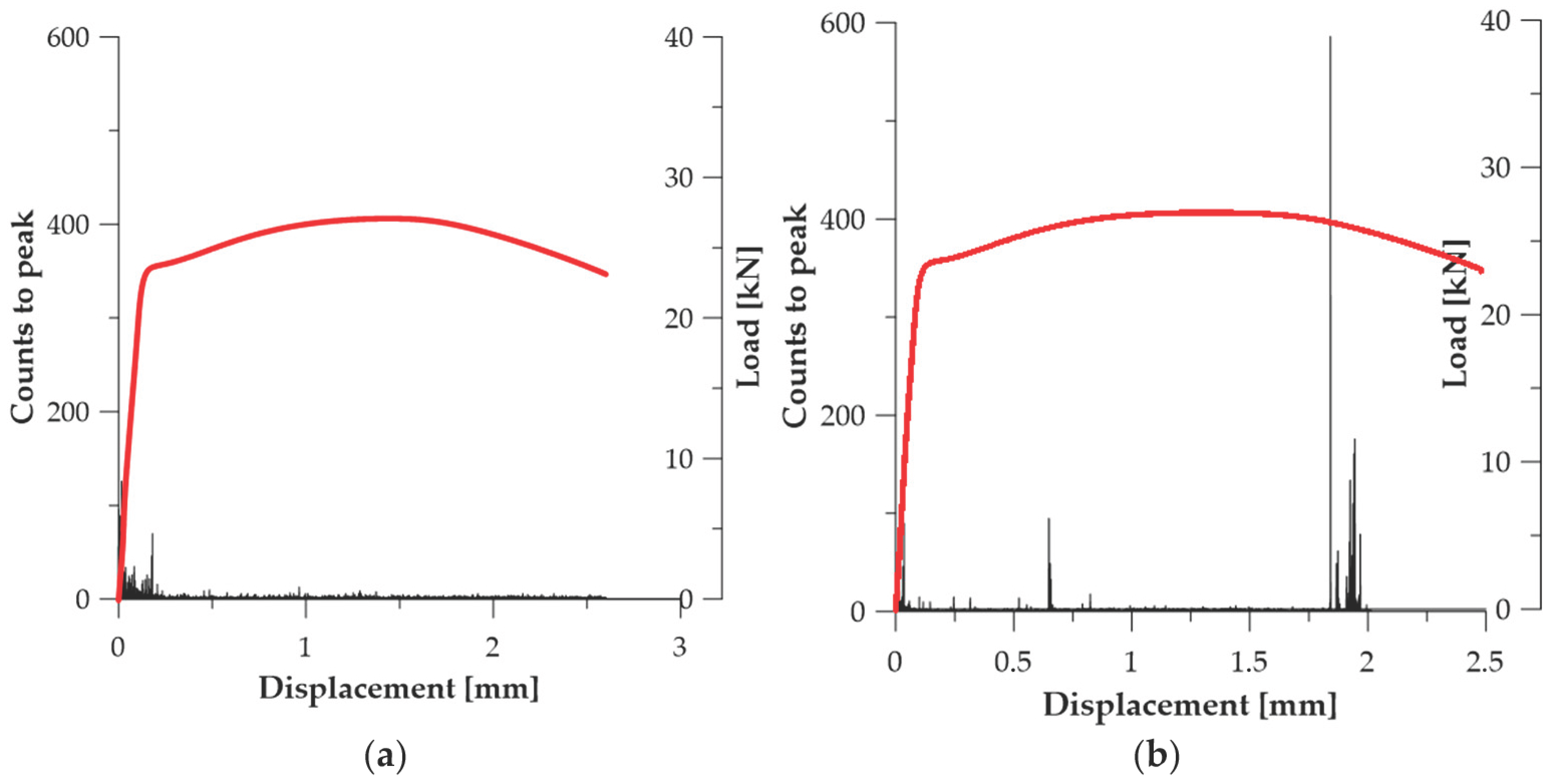 - Tworzewski, P.; Teodorczyk, M.; Tworzewska, J. Tracking of Crack Formation in Concrete Using Acoustic Emission Method and Digital Image Correlation. In Proceedings of the 19th International Conference on Fracture Mechanics (ICFM19), Wrocław, Poland, 27–31 August 2018; Volume 471, p. 052032. [Google Scholar] [CrossRef]
