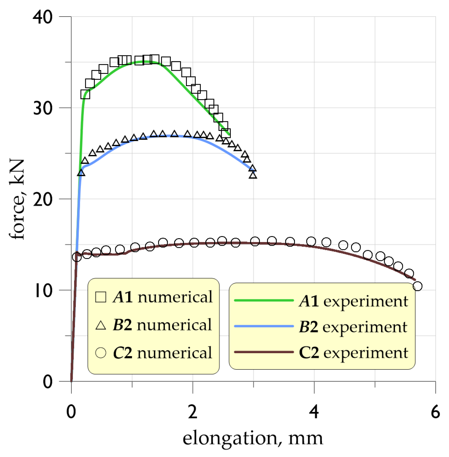 43]. The programme requires the definition of the linear-elastic and plastic parts of the material. In the research, great attention was paid to the definition of the material for use in numerical simulations, following the methodology presented in the work [