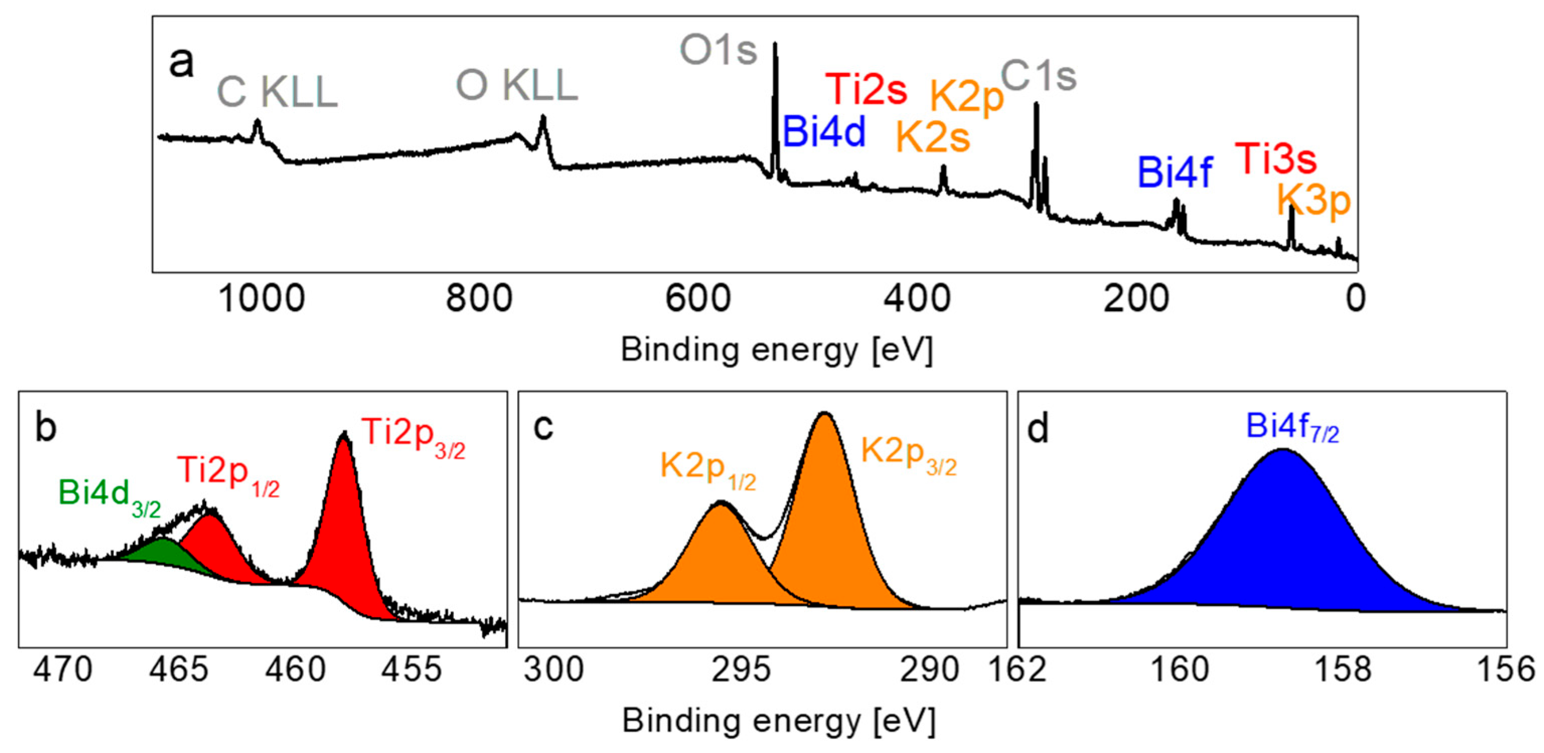 5+. Therefore, we can speculate that they can be incorporated into different places within the structure. If that is the case, it would mean that Bi can modify the density of defects, especially by reducing the density of oxygen vacancies, thereby supplying the structure with electrons. Therefore, one cannot exclude Bi disorder in the KBT structure; however, it is not acting negatively, but rather positively, on the polar properties presented in our paper.