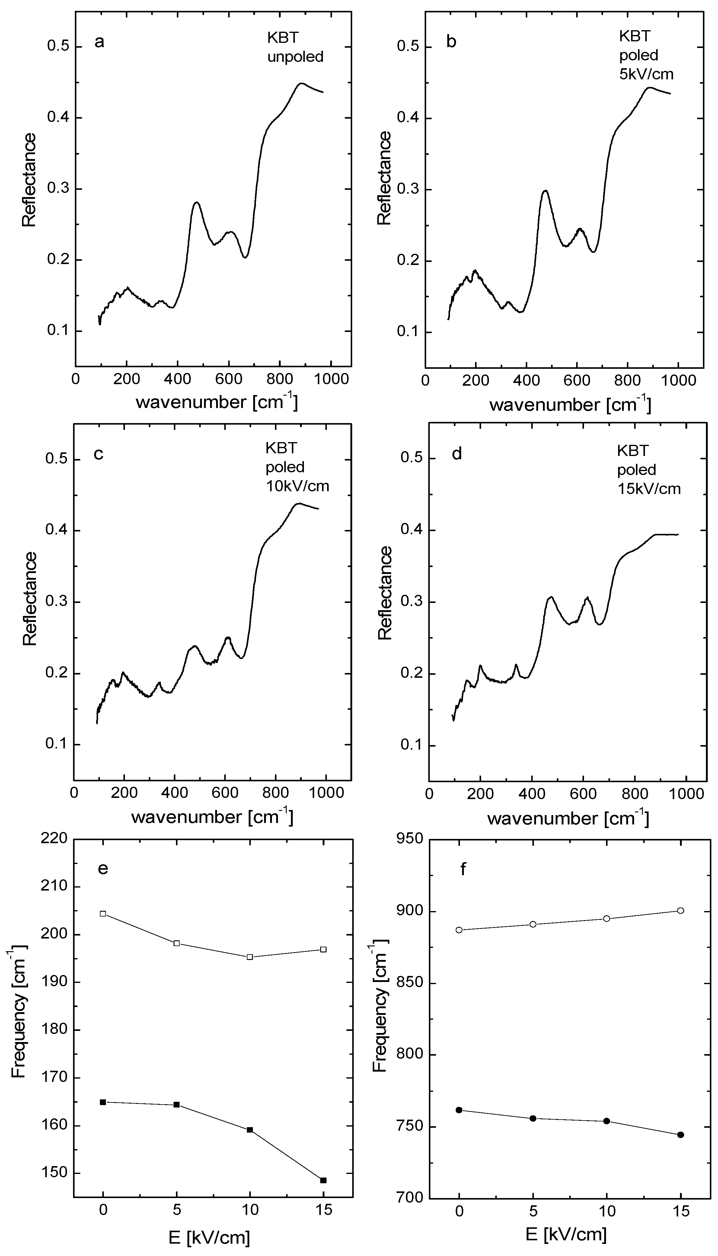 Above this temperature, frequencies of these modes remain nearly constant, indicating the displacive character of this transition. In the poled state, modes 91, 233, 345, and 615 cm