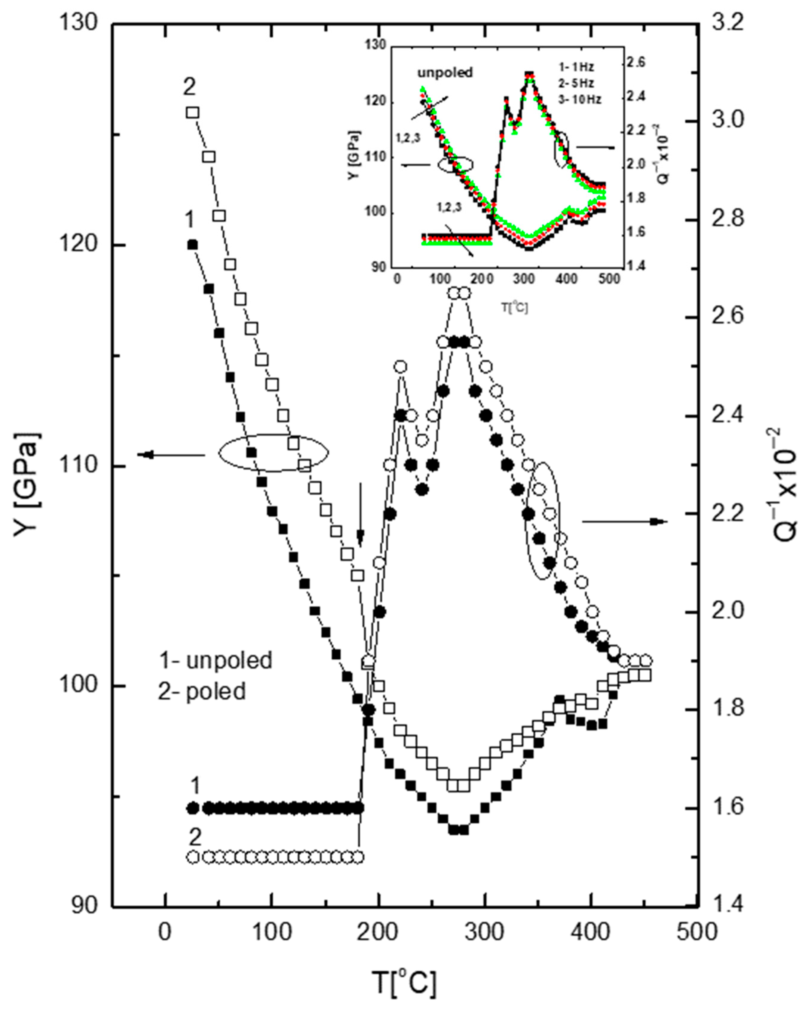 Figure 11 depicts the temperature dependence of Young’s modulus (Y) and the internal friction (Q