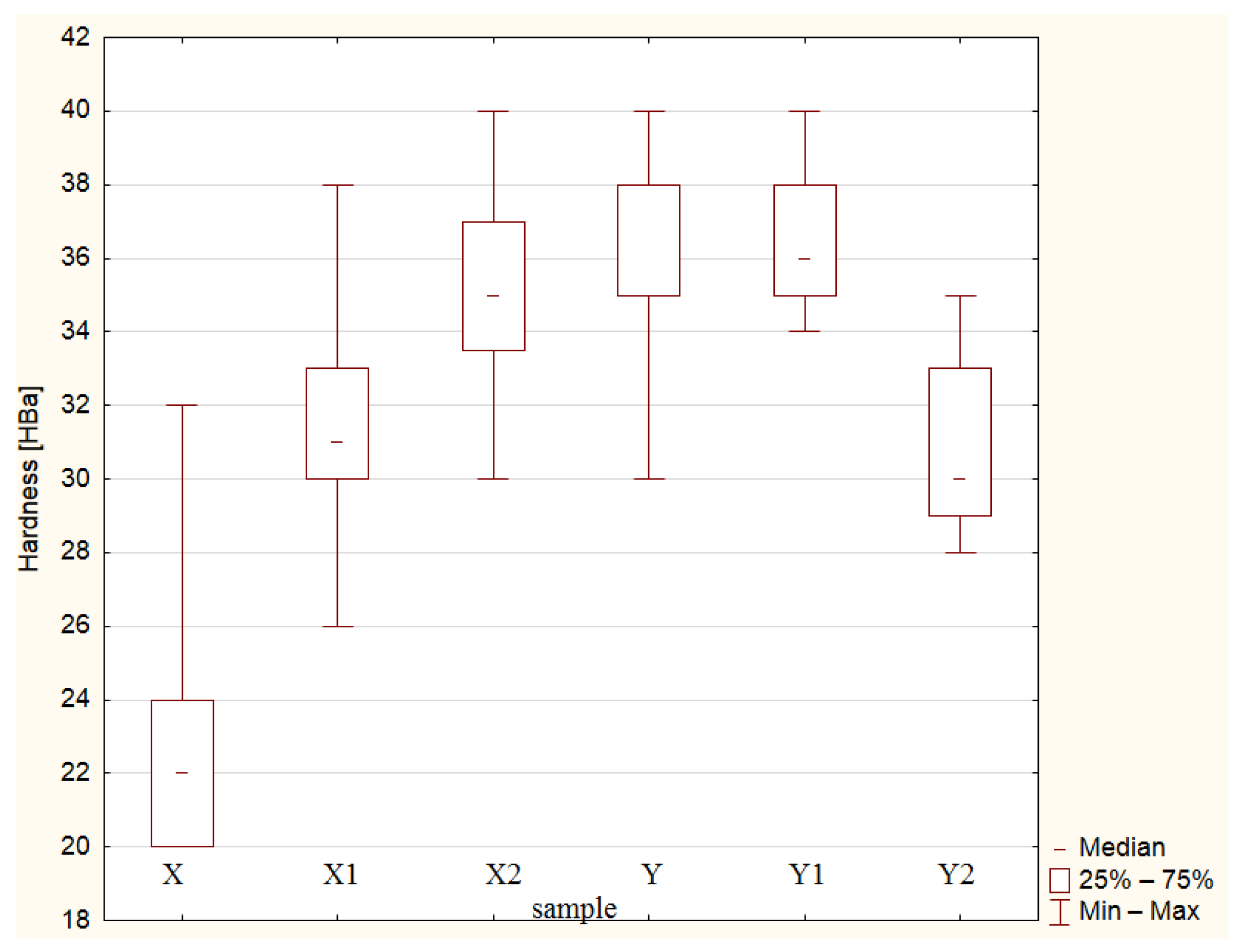 Hardness results, summarised in Table 8 and evaluated through the Kruskal–Wallis ANOVA and median test, demonstrate the following: