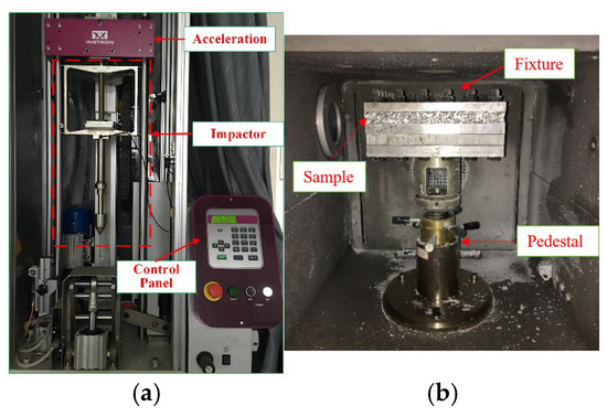 Experimental apparatus: (a) INSTRON 9350 Drop Tower; (b) environmental chamber.