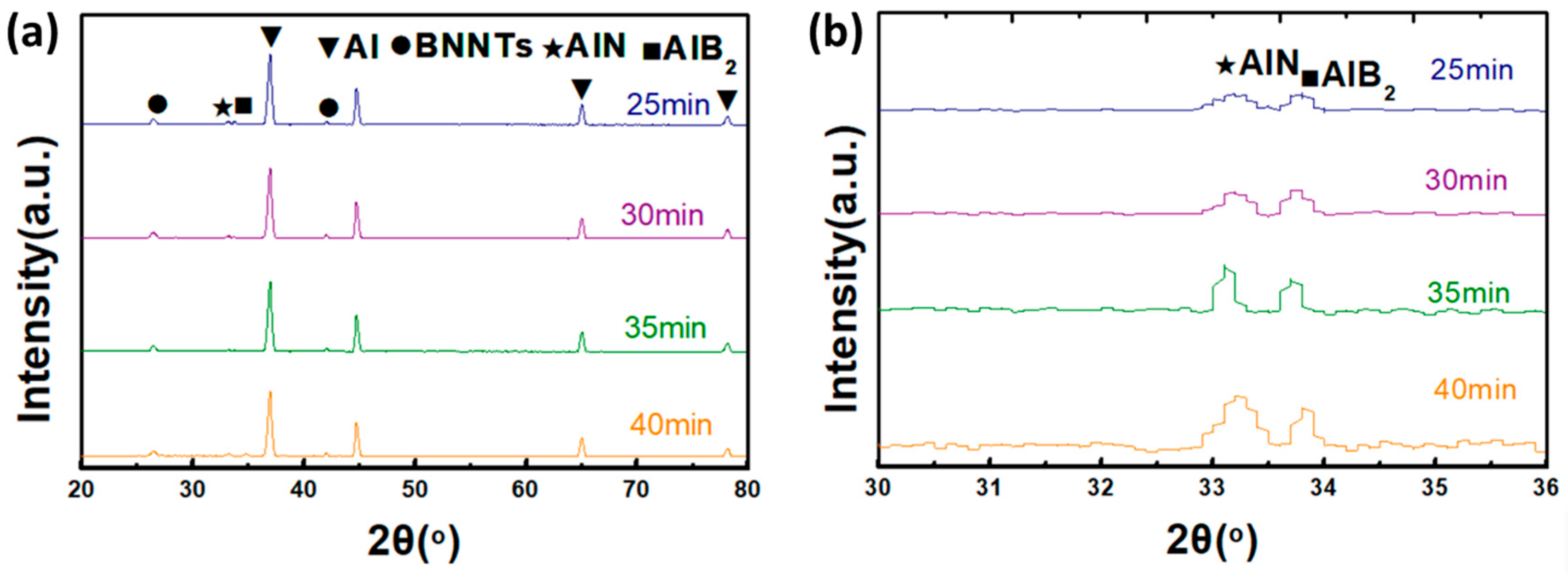 34]. Moreover, no significant interfacial voids or debonding were observed between BNNTs and the Al matrix, indicating excellent interfacial bonding between the two.