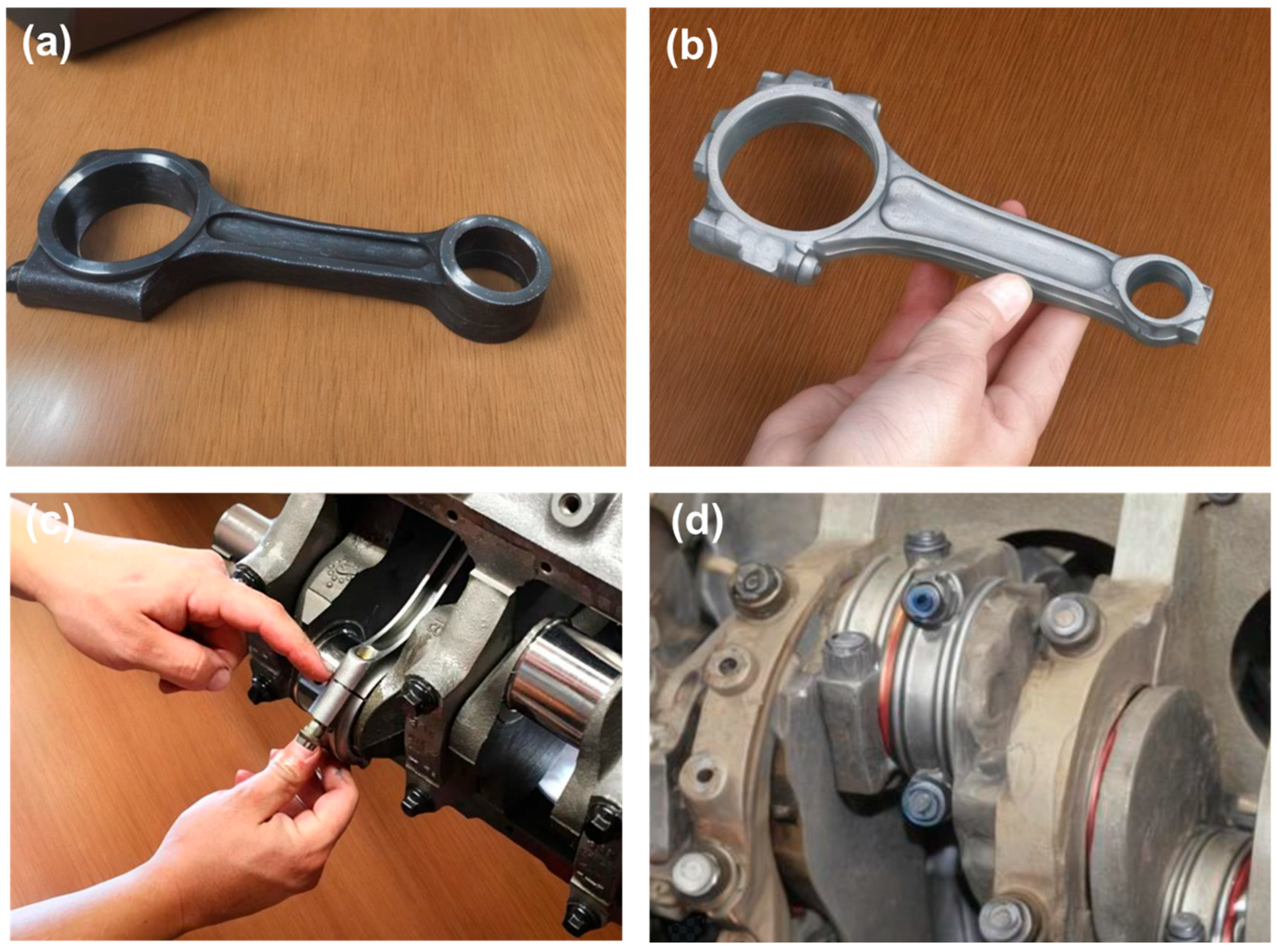 Figure 10a, the surface morphology of a 40Cr steel connecting rod features mature production processes and reliable performance, thus making it a widely adopted component in the automotive industry. However, the high density of 40Cr steel (7.85 g/cm