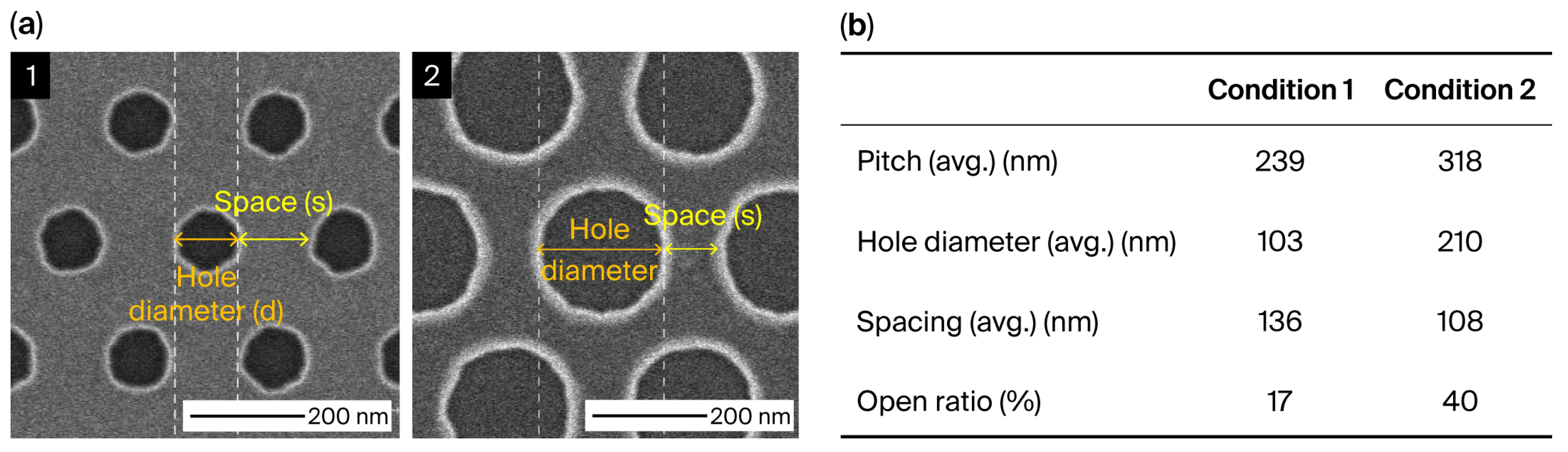 2.1. Geometric Design and Fabrication of Hole-Patterned EUV Pellicles