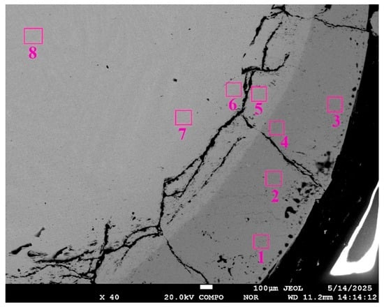 The results of microprobe analysis of the transition zone in the areas specified in Figure 13.