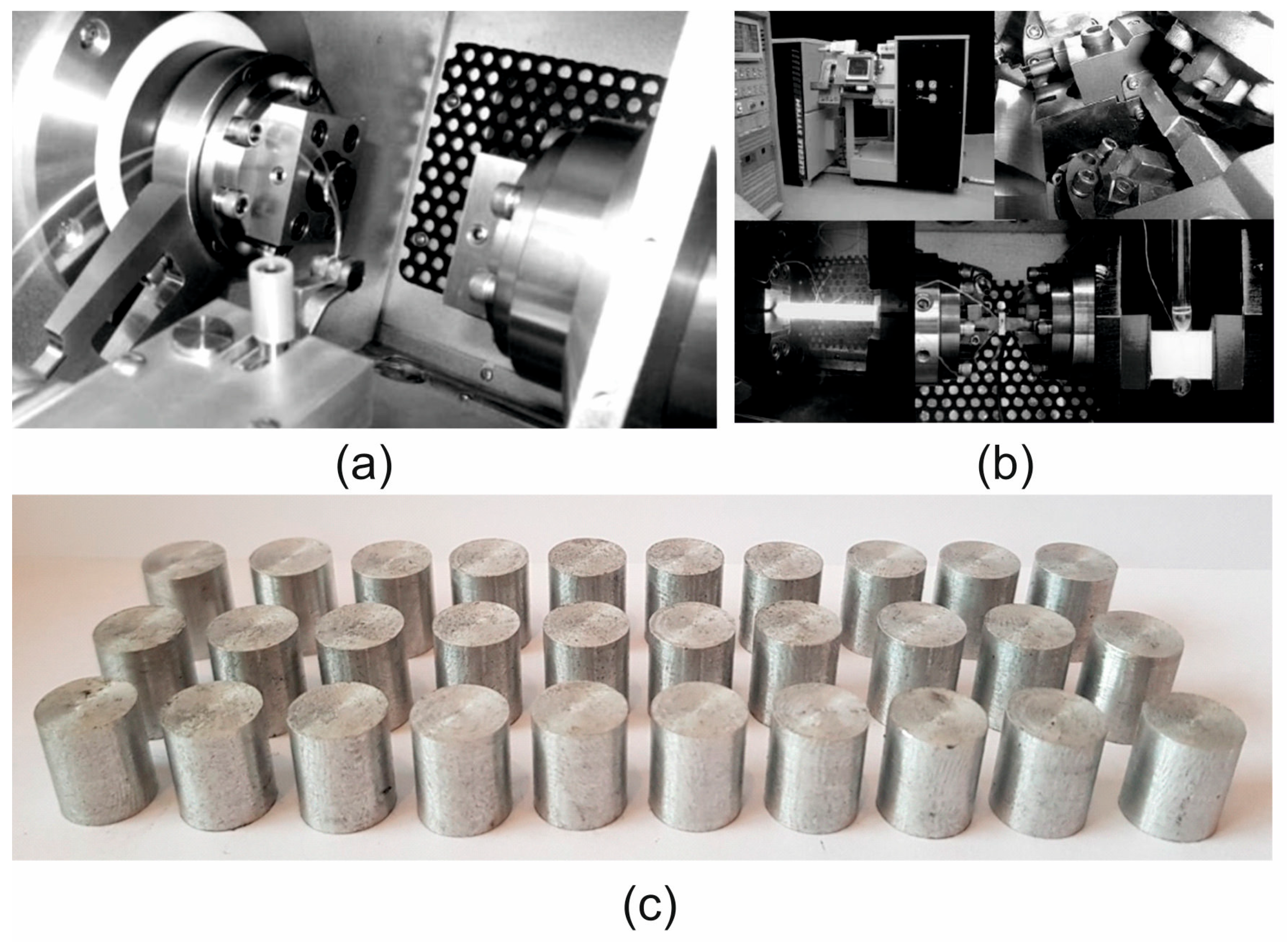 Figure 21b,d) indicate that the Gleeble simulator tests correctly predict the behaviour of the material in the actual technological process (material deformability) with the determination of the plastic forming limit temperature. This is of great practical importance, as it enables the correct selection of technological parameters for the industrial plastic-forming process and avoids time-consuming and costly implementation trials.