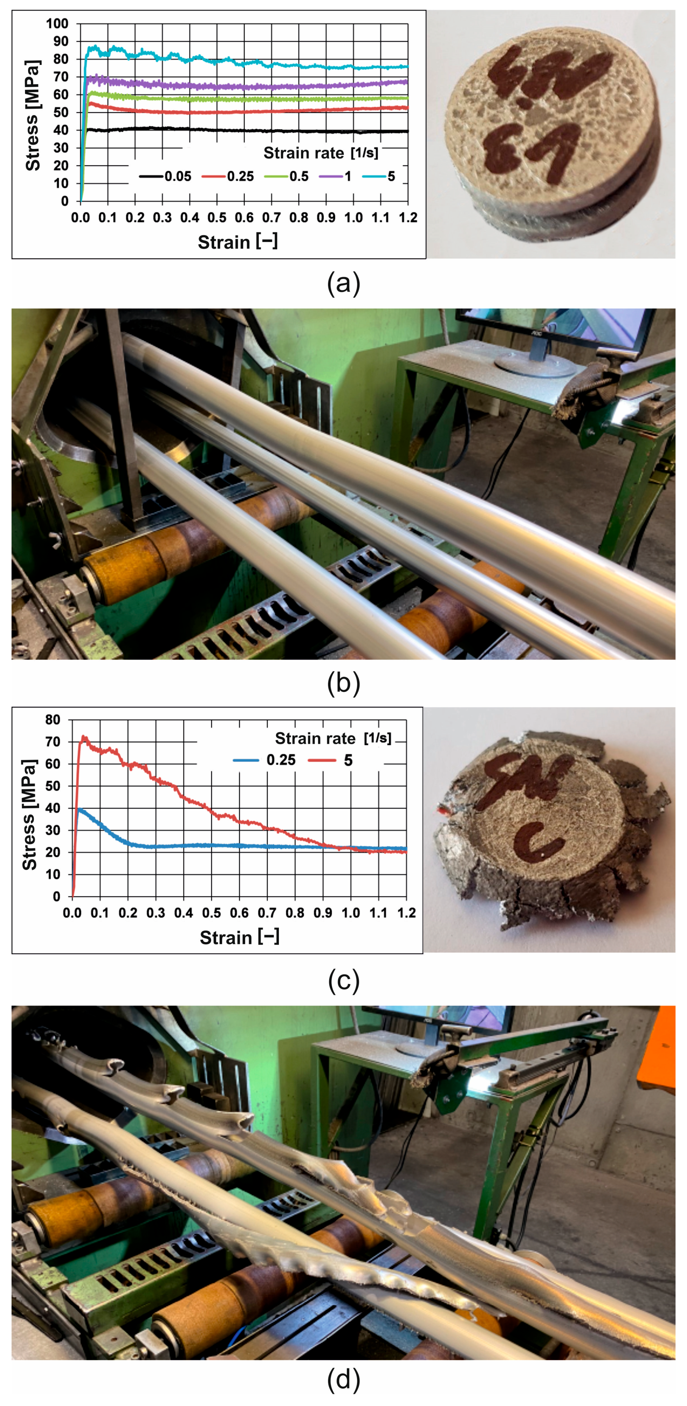 20]. These studies demonstrate the significant impact of the accuracy of the mathematical model of rheological properties on the distribution and values of the deformation parameters and on the stress of the tested material. The research clearly shows that the correct calculation of deformation parameters (deformation value, deformation rate) and stress requires the use of an accurate mathematical model of the tested material. In turn, accurate calculation of the yield stress value is necessary for the correct determination of the energy and force parameters of various plastic working processes, e.g., extrusion force, metal pressure force on the roll during rolling, force in the drawing process, etc. Furthermore, according to the authors of [