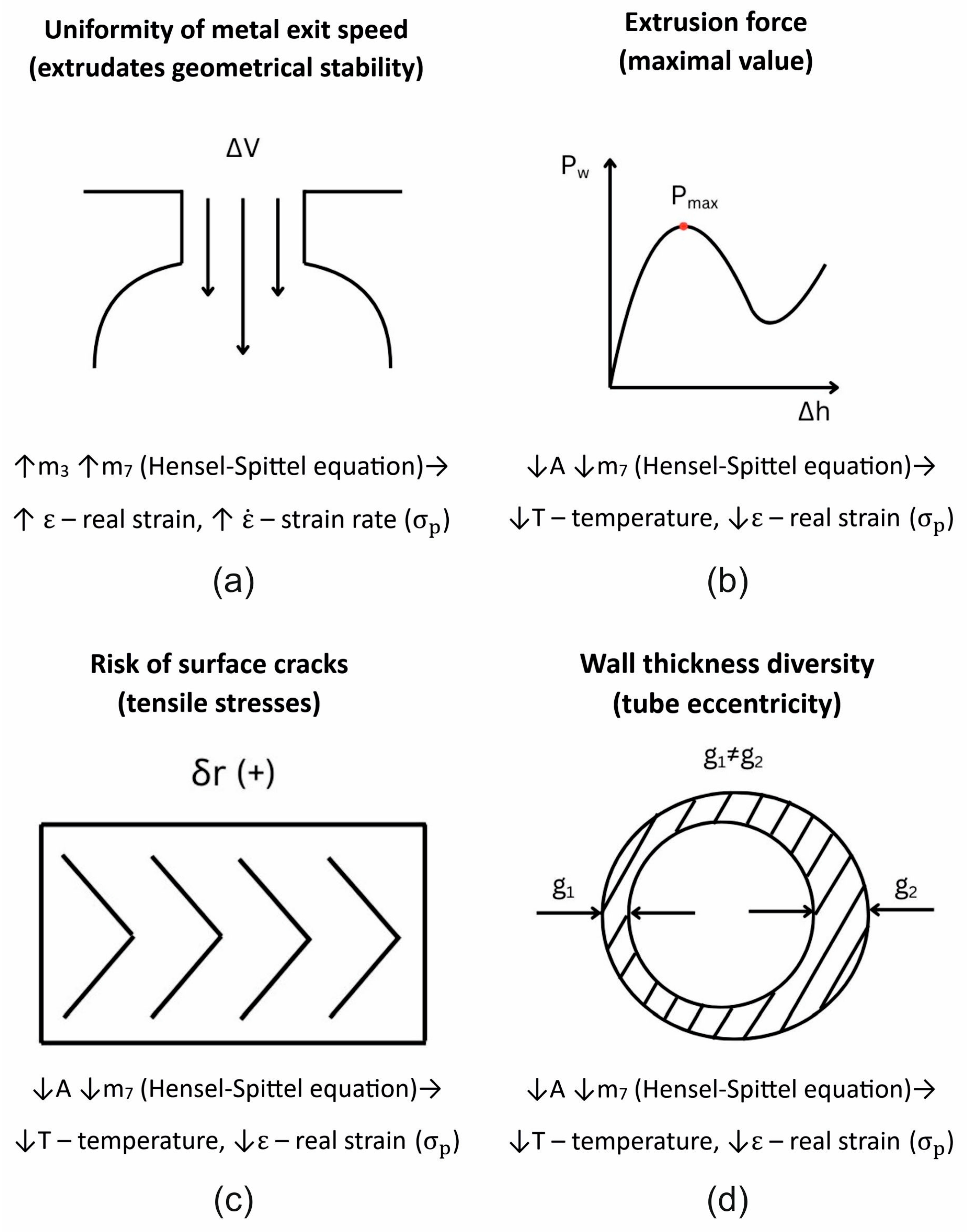 1]. The authors of that paper performed calculations to determine the extrusion force of 6xxx series aluminium alloys with a view to minimising it for conical flat dies. In the actual extrusion process, it often happens that the force is too high, which poses a serious threat to production. It increases the unstable factors in metal forming and the extrusion difficulties, and moreover, it can easily cause premature damage to tools, in particular the die, and failure of the extrusion equipment system [