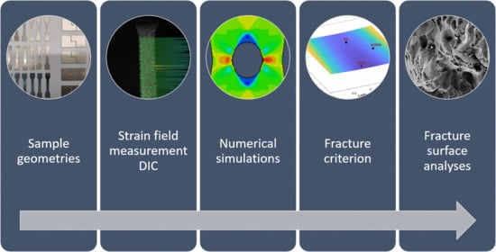 - Lian, J.; Sharaf, M.; Archie, F.; Münstermann, S. A hybrid approach for modelling of plasticity and failure behaviour of advanced high-strength steel sheets. Int. J. Damage Mech. 2013, 22, 188–218. [Google Scholar] [CrossRef]