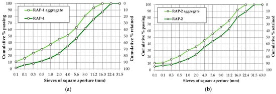 - Classification of reclaimed asphalt material based on maximum particle size and aggregate grading—according to EN 13108-8 [41];