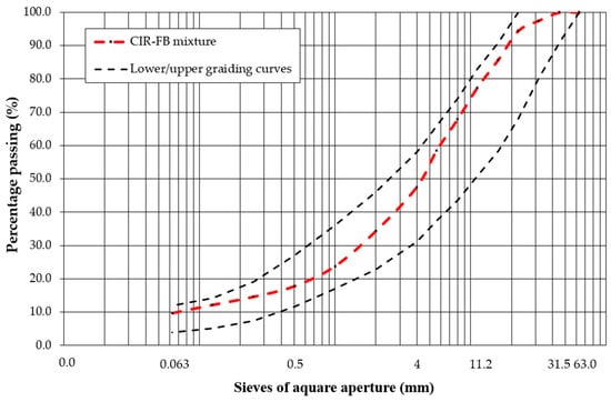 The final CIR-FB mixture composition (gradation, FB and C contents and OMC) was established based on the laboratory optimization procedure.