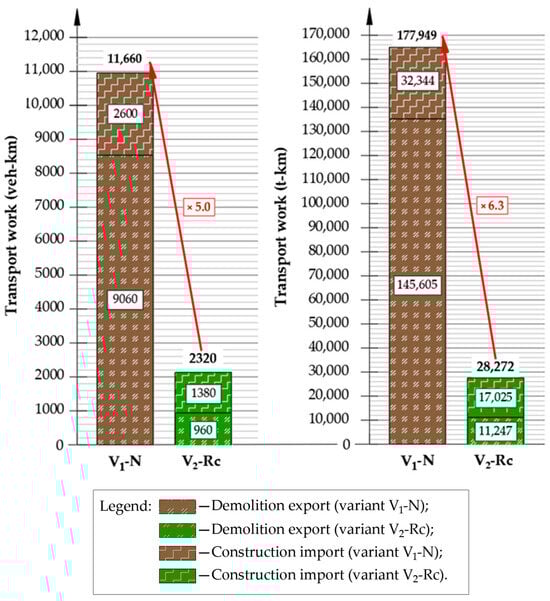 - Demolition waste decreased by approximately 39% and transport demand was reduced by a factor of five to six.