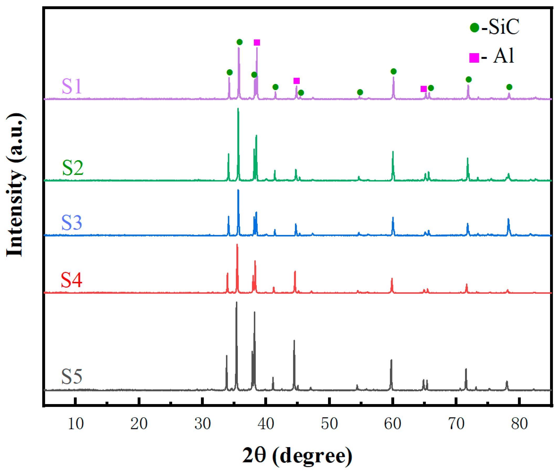 3.2. Phase Composition and Microstructure Evolution of SiCp/Al Composites