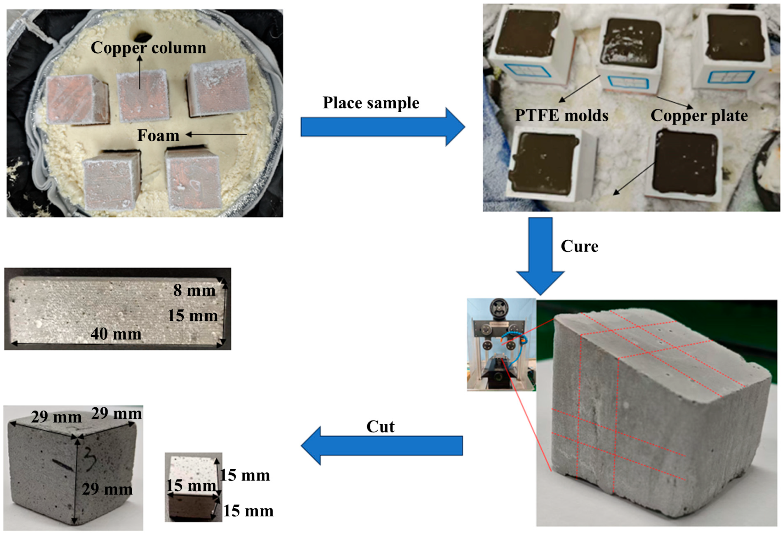- Chen, Y. Preparation, Structure and Properties of Ordered Layered Cement Paste-Hydrogel Composite Based on Ice Template. Master’s Thesis, Southeast University, Nanjing, China, 2023. [Google Scholar]