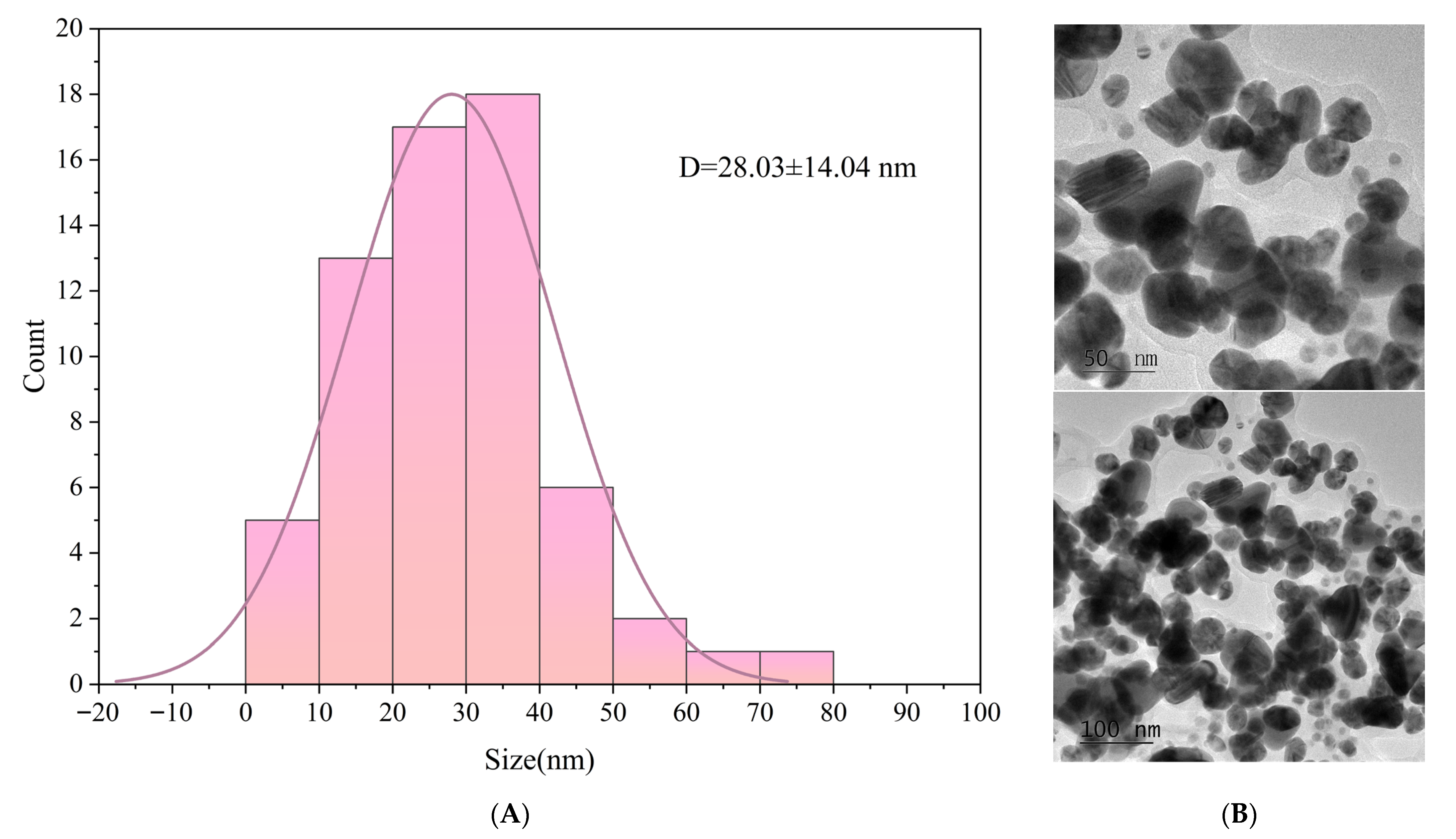 - Shahzad, A.; Hanif, S. Green Synthesis and Fabrication of Silver Nanoparticles via PEG: Characterization, Physiological Responses to Silver Stress, Antibacterial Activity and Its Stability. Plasmonics 2025, 20, 9323–9337. [Google Scholar] [CrossRef]