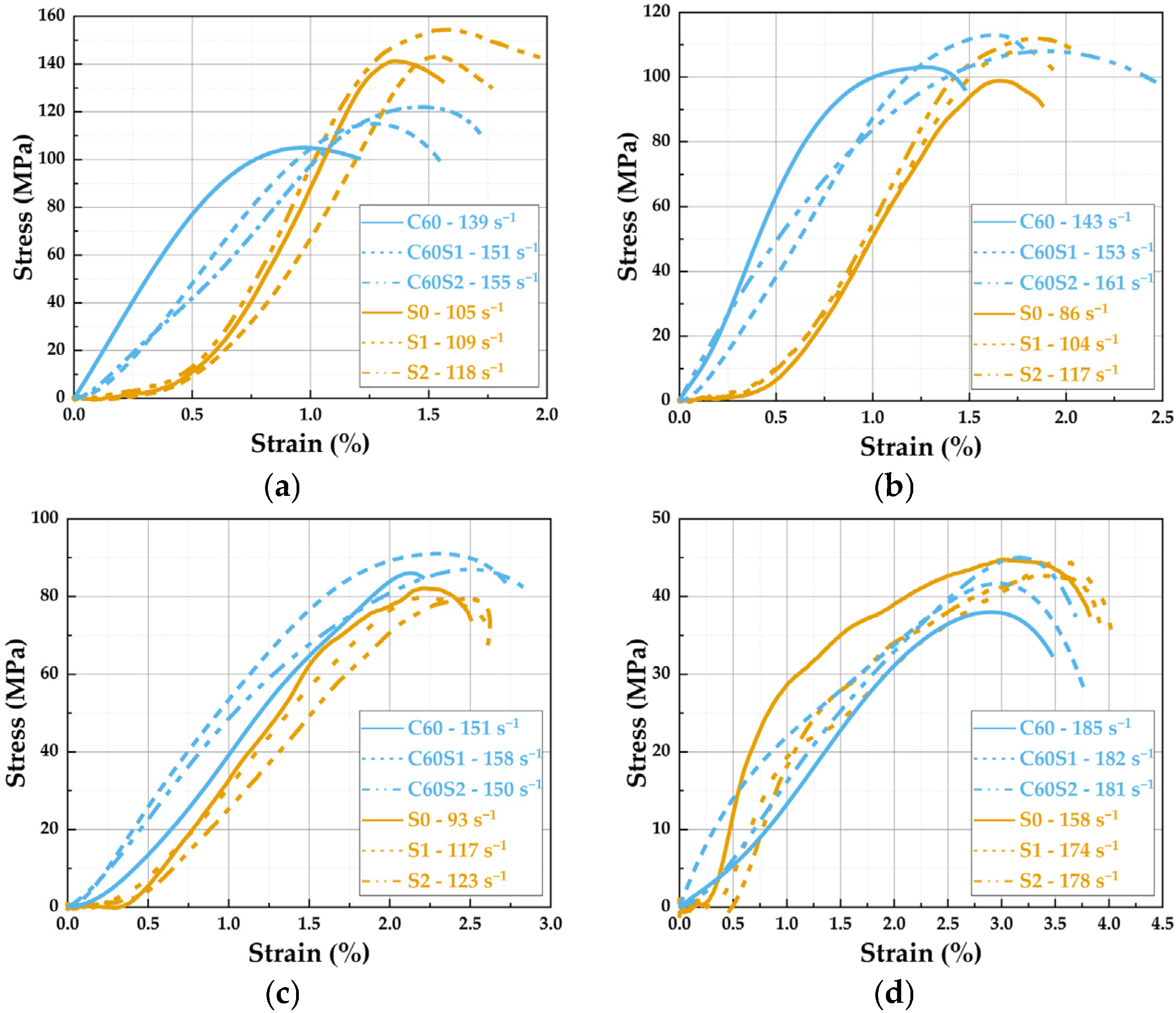 3.2. Comparative Analysis of Dynamic Compression Properties