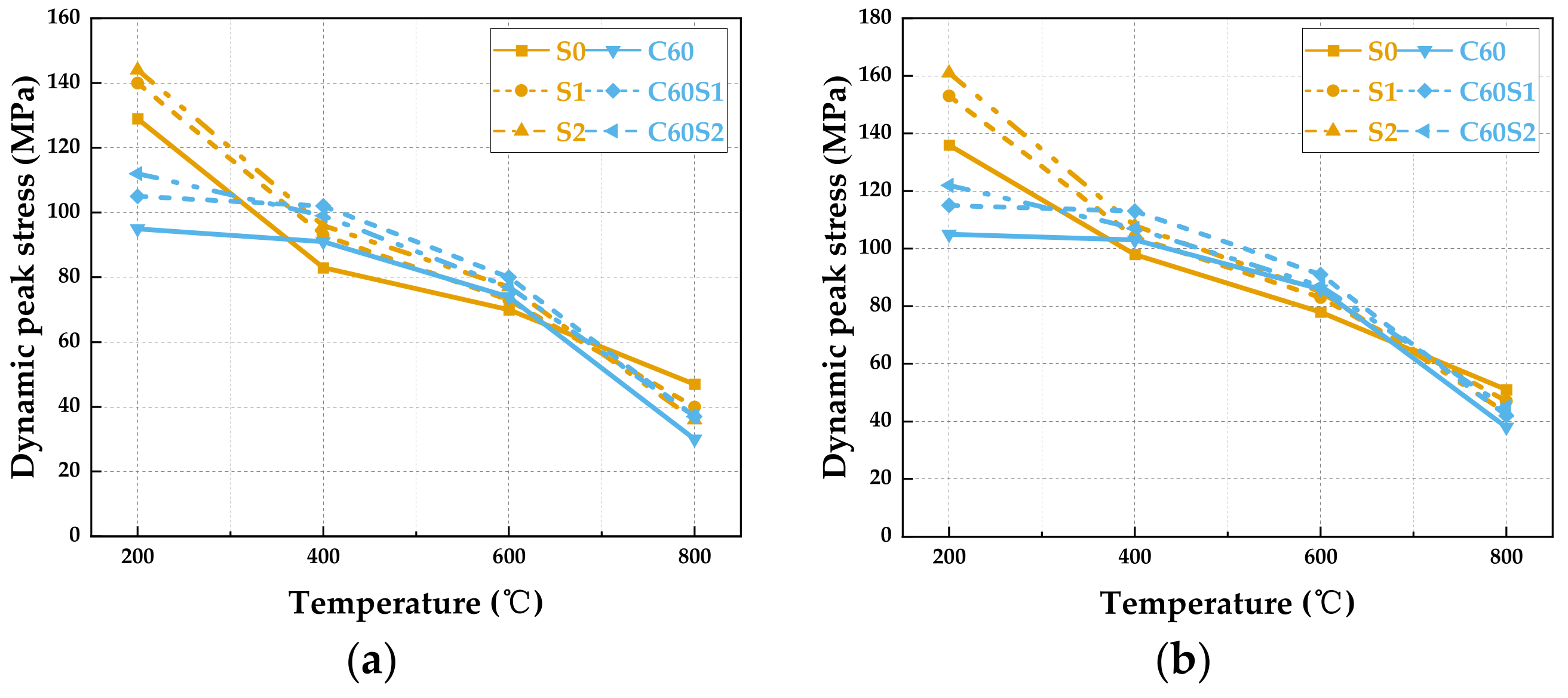 - Li, L.; Wang, Z.C.; Wu, J.; Du, X.L.; Wang, H.W.; Liu, W.L. Comparative analysis of dynamic mechanical properties of steel fiber reinforced concrete under ambient temperature and after exposure to high temperatures. Case Stud. Constr. Mater. 2024, 20, e2778. [Google Scholar] [CrossRef]