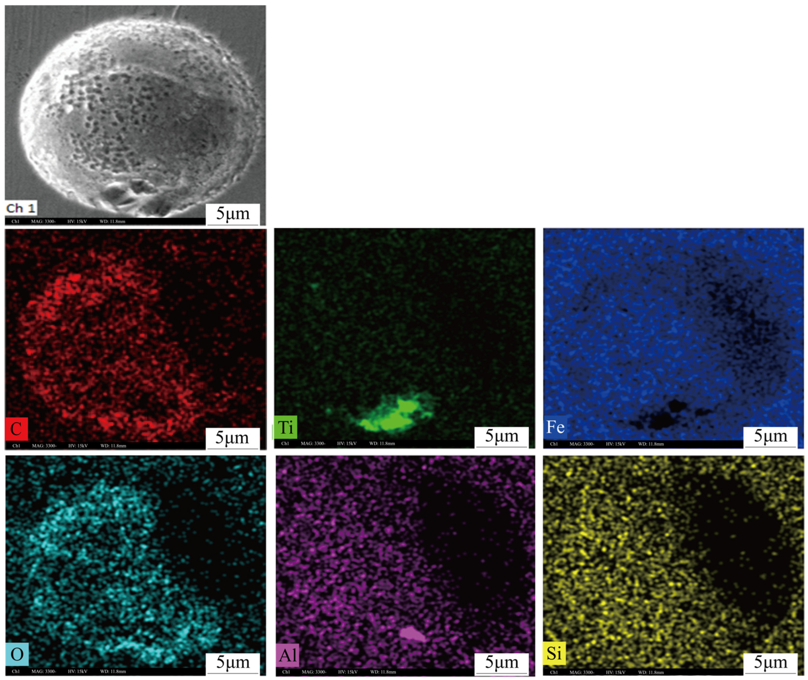 Scanning electron microscopy and energy spectrum analysis reveal that certain bubbles adhered to inclusions. As shown in