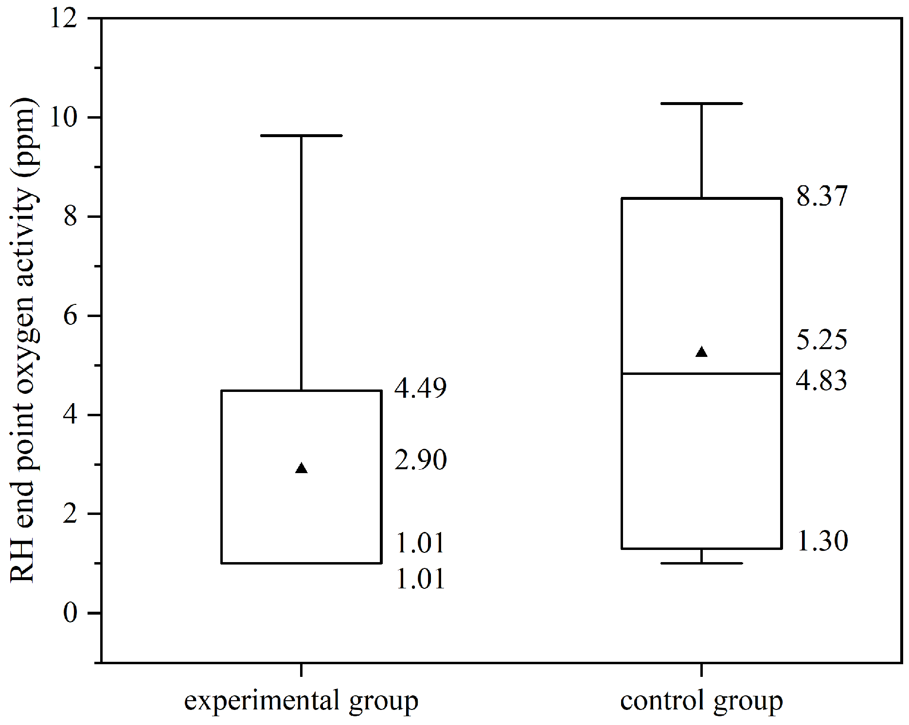 By comparison, it is credible that the endpoint oxygen activity of the experimental group is lower than that of the control group.