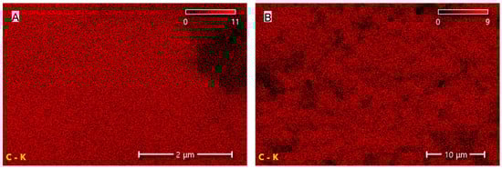 Carbon distribution maps of the CNT (A) and G (B) fillers obtained using SEM-EDS.