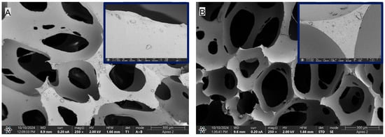 The selection of fillers in polymer composites represents a critical stage in the development of polymeric materials, as their appropriate choice and dosage directly affect both the functional and processing properties. An excessively low additive content may fail to provide the desired functional effect, whereas an excessive loading can lead to deterioration of the material morphology and degradation of its performance characteristics. In the case of carbon-based fillers, it is particularly important to maintain a balance between the barrier effect and the risk of particle agglomeration, which may disrupt the foaming process [26]. The scientific literature indicates that, to achieve the desired physicochemical properties without inducing adverse effects, filler loadings typically range from a few weight percent to values often exceeding 20 wt.%, depending on the type of filler employed. The concentrations are selected to enable the flame-retardant action in the condensed phase through the formation of a stable char layer, while simultaneously minimizing the negative impact on the mechanical properties and flexibility of the foams [27].