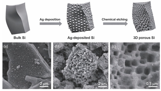 - Bang, B.M.; Lee, J.-I.; Kim, H.; Cho, J.; Park, S. High-Performance Macroporous Bulk Silicon Anodes Synthesized by Template-Free Chemical Etching. Adv. Energy Mater. 2012, 2, 878–883. [Google Scholar] [CrossRef]