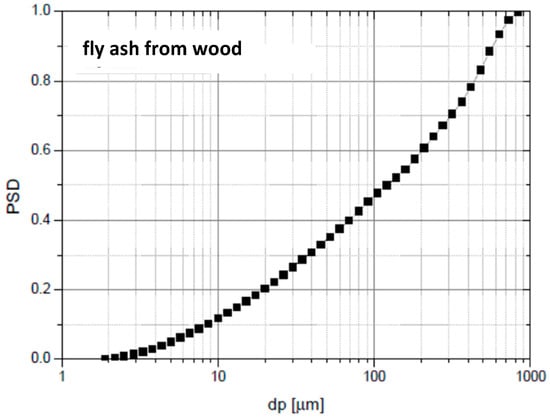 PSD of fly ash produced during the combustion of wood biomass.