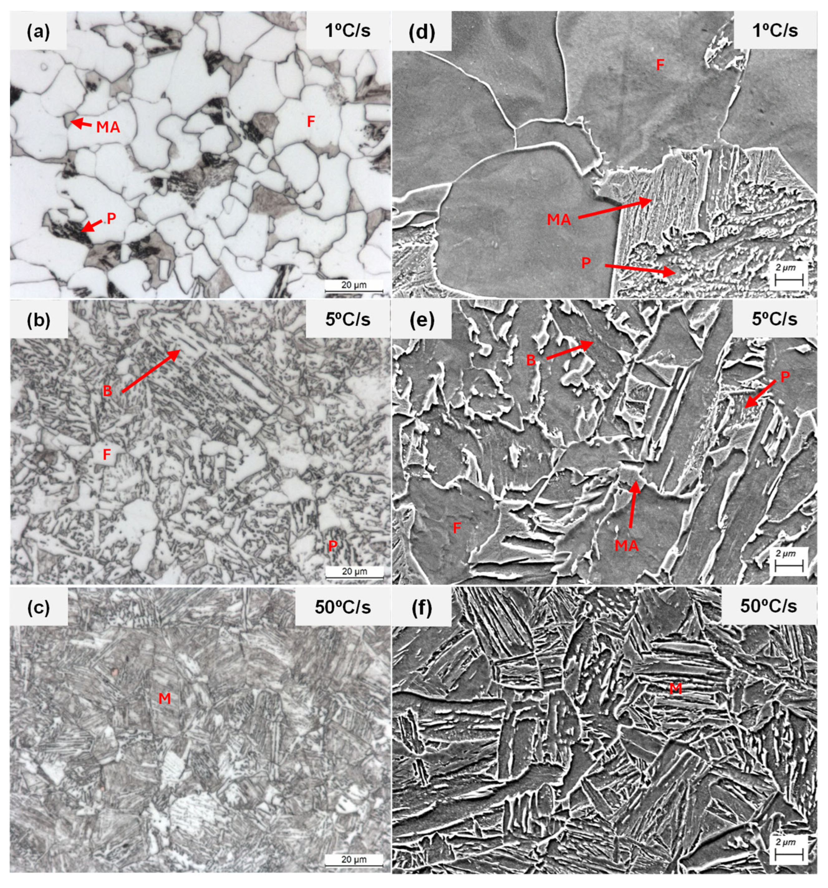 3.3. Influence of Mo and Ni on Phase Transformations