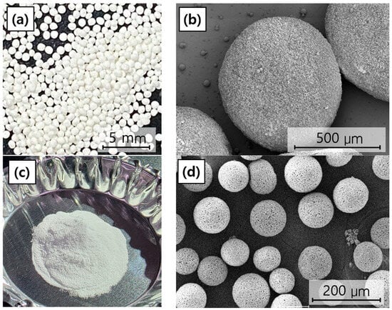 3.1. Microstructure of BGS-7 Macrobeads and Microbeads