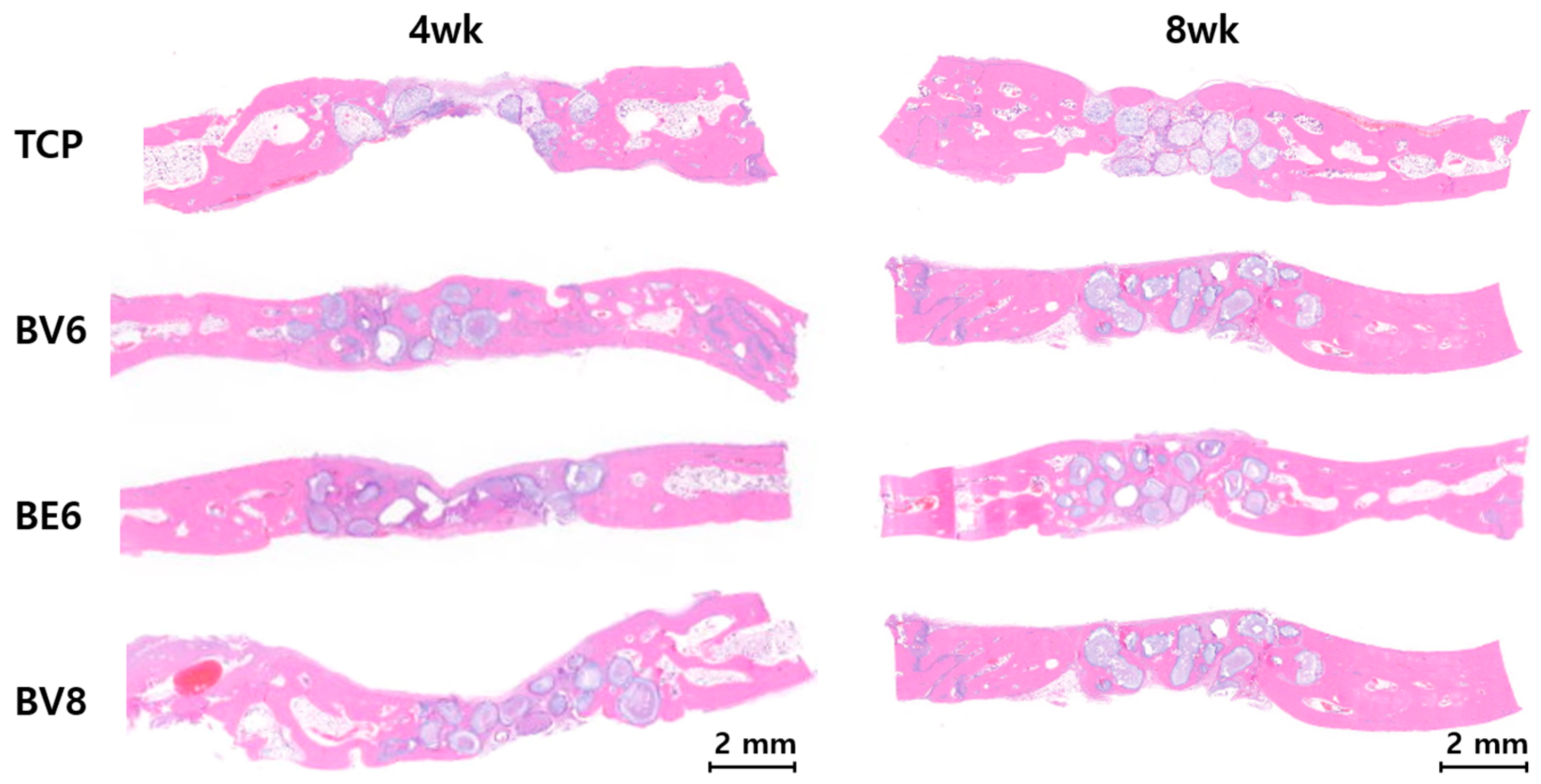3.3.2. Micro-CT Analysis at 8 Weeks Post-Implantation