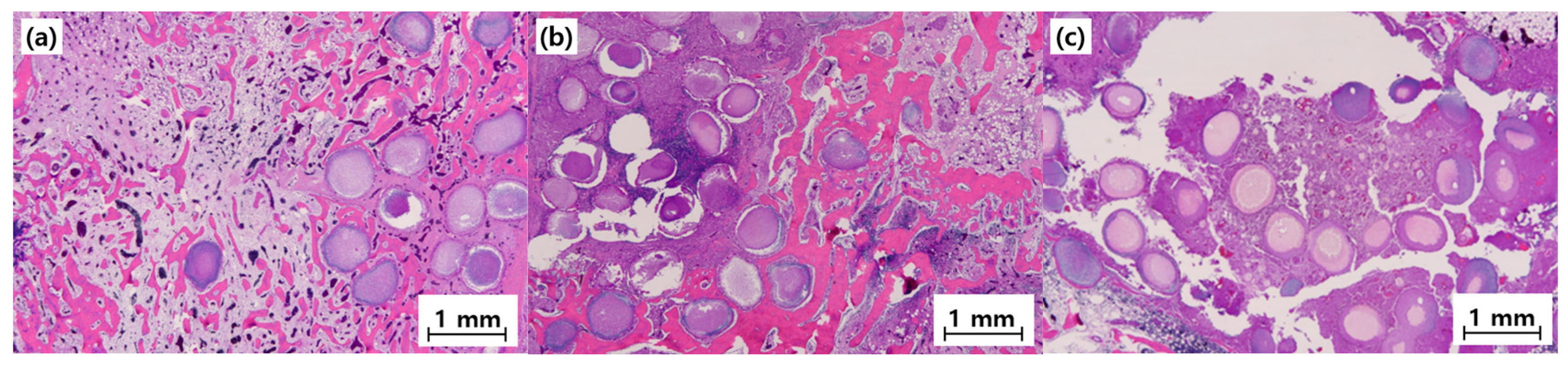 - Wheeler, D.L.; Stokes, K.E.; Park, H.M.; Hollinger, J.O. Evaluation of particulate Bioglass® in a rabbit radius ostectomy model. J. Biomed. Mater. Res. 1997, 35, 249–254. [Google Scholar] [CrossRef]
