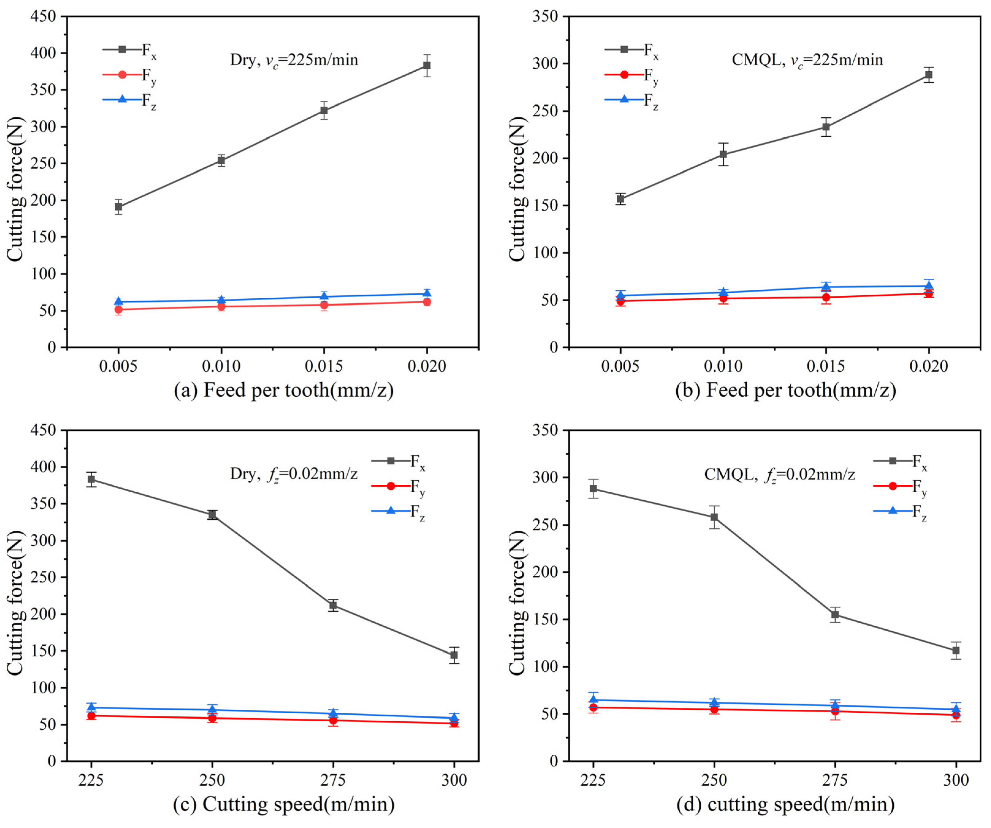 | Feed per tooth (fz) | 0.005, 0.01, 0.015, 0.02 (mm/z) |