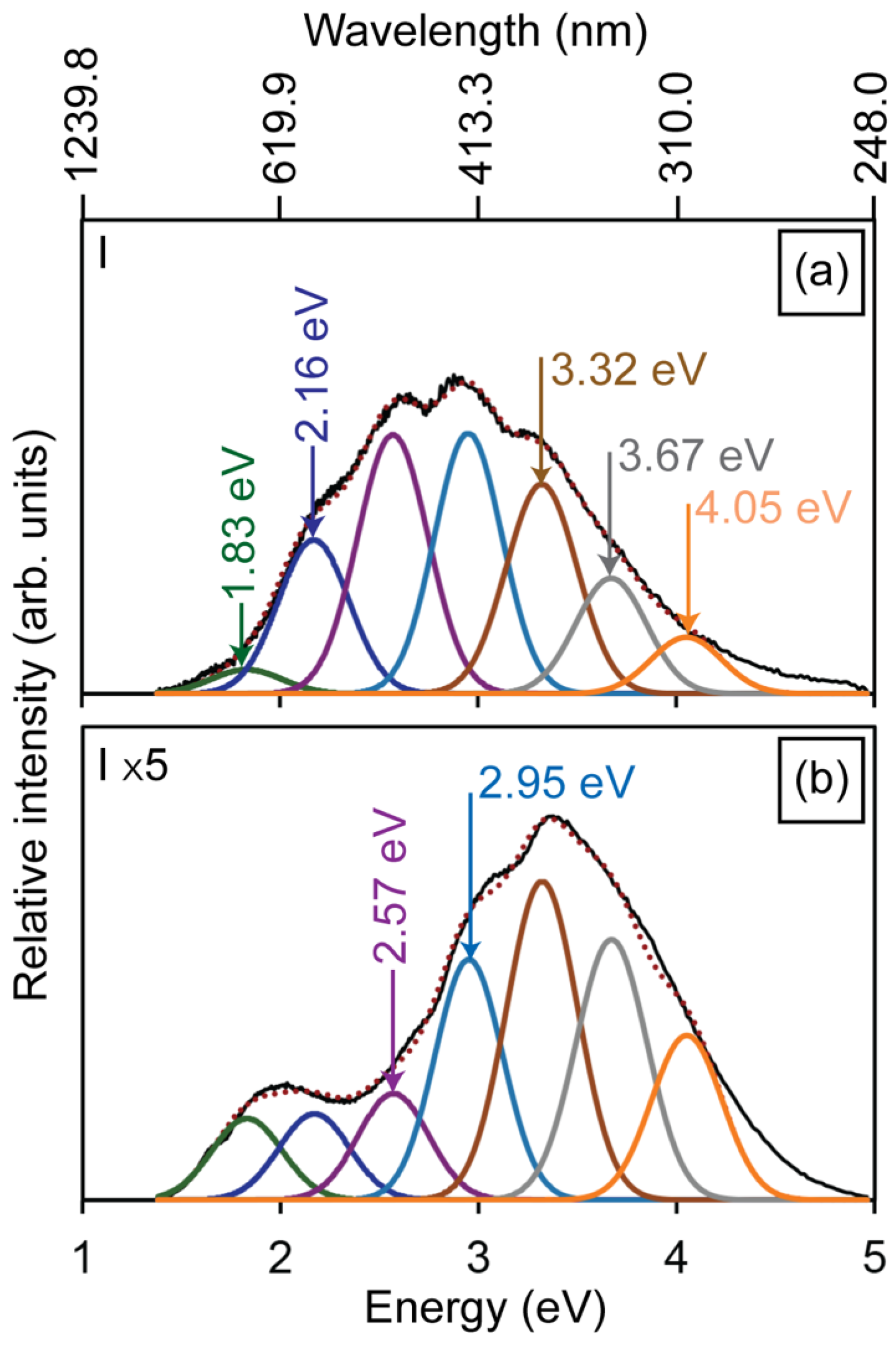 - Makhov, V.N.; Lushchik, A.; Lushchik, C.B.; Kirm, M.; Vasil’chenko, E.; Vielhauer, S.; Harutunyan, V.V.; Aleksanyan, E. Luminescence and radiation defects in electron-irradiated Al2O3 and Al2O3:Cr. Nucl. Instrum. Methods Phys. Res. Sect. B 2008, 266, 2949–2952. [Google Scholar] [CrossRef]
