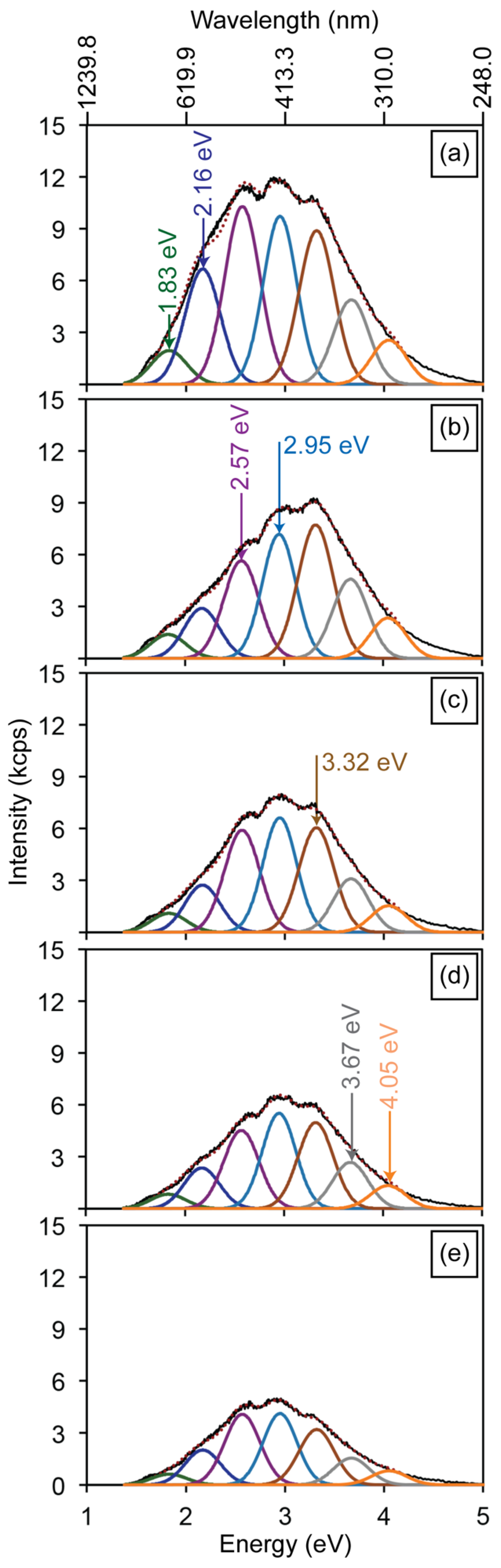 - Elrahoumi, R.; Zhu, L.; Wagner, E.; Maudez, W.; Benvenuti, G.; Phillips, M.R.; Ton-That, C. Doping-induced Ti3+ state and oxygen vacancies in TiO2: A single-chip combinatorial investigation. Mater. Chem. Phys. 2023, 308, 128283. [Google Scholar] [CrossRef]