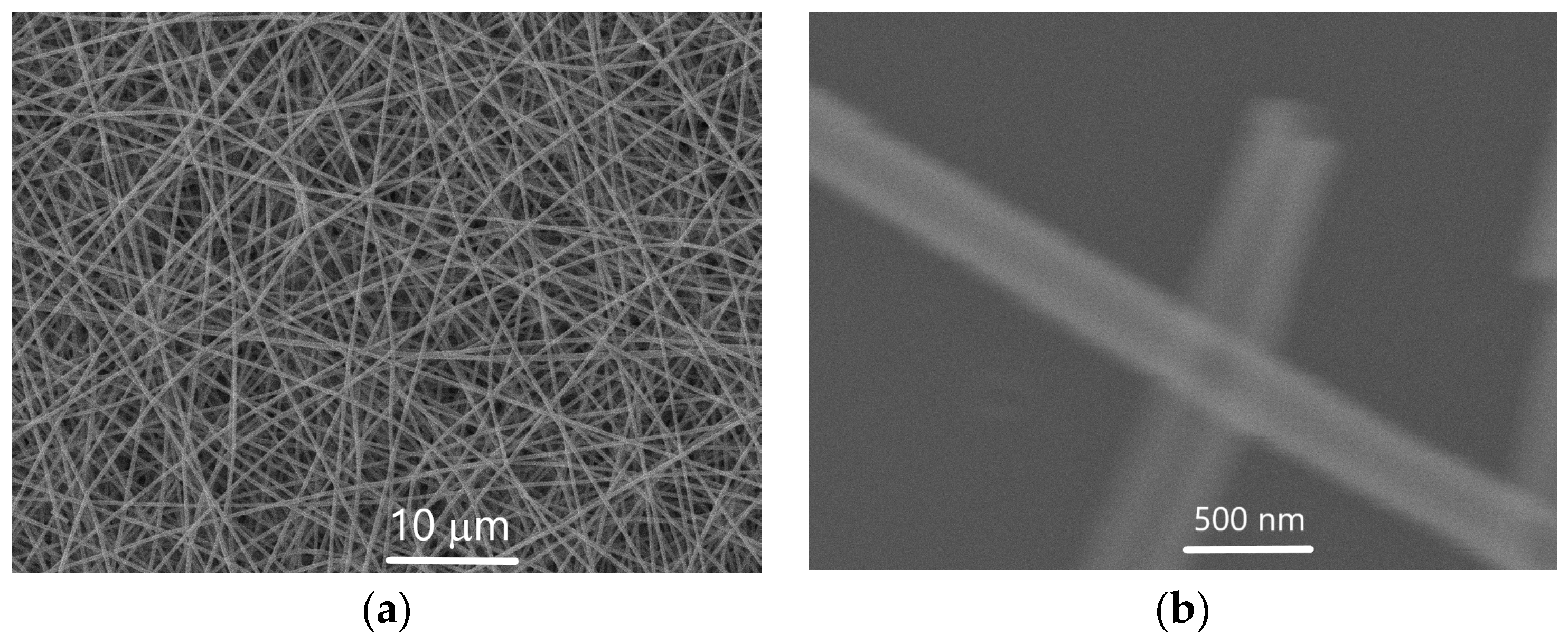 21]. While thermal annealing is well-established, the dissolution method remains comparatively underexplored, with limited available data. Fibers produced by dissolution often exhibit reduced lattice strain and increased surface roughness (e.g., coral-like structures [