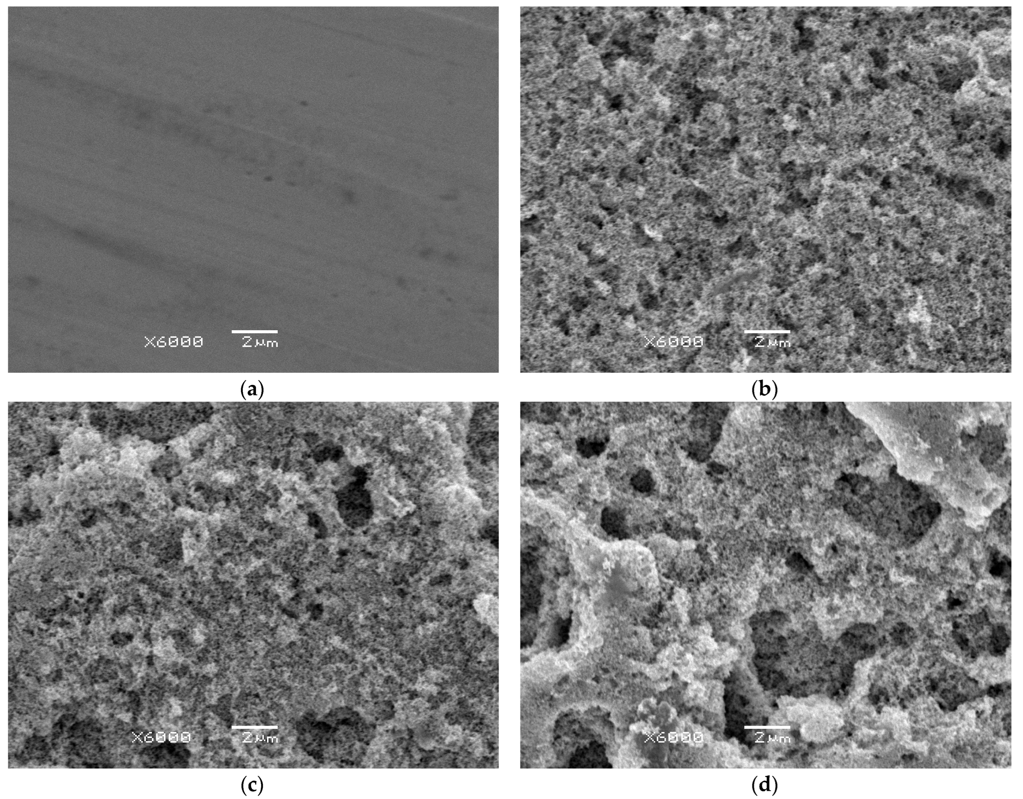 3.1. The Effect of Anodizing on the Surface Morphology and Porosity of p-Au