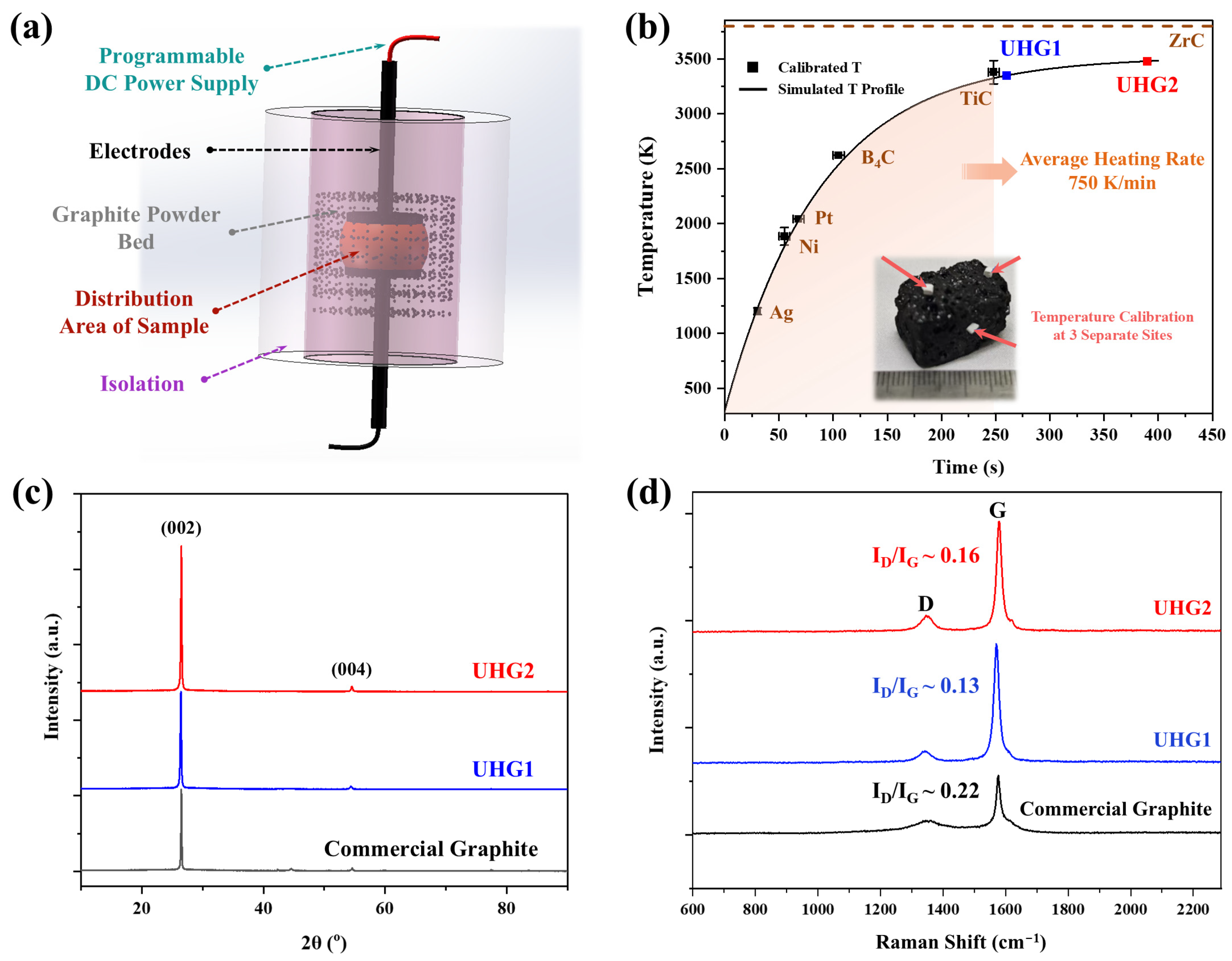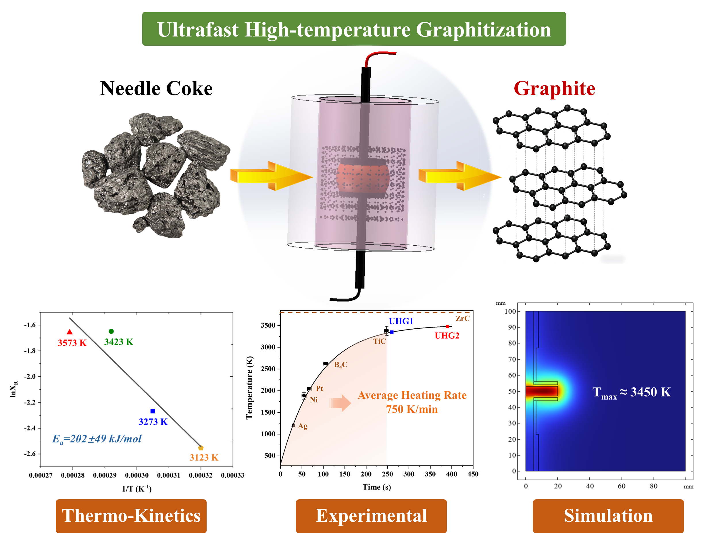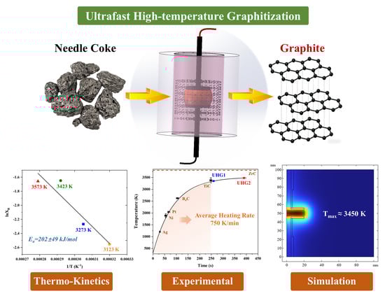 13]. However, to the best of the authors’ knowledge, the work on ultrafast high-temperature graphitization (UHG) is very limited in existing literature. With this background, the present work aims to demonstrate the feasibility of UHG for synthesizing graphite within minutes using reduced energy input, which may offer new insights into more sustainable graphitization.