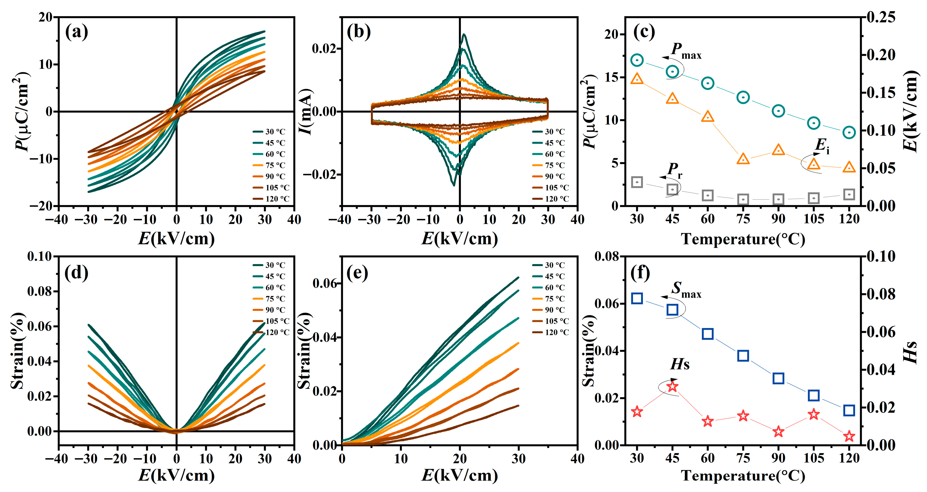 | System | Emax (kV/cm) | Smax (%) (@RT) | Hs (%) (@RT) | Q33 (m4/C2) | Measuring Temperature | Ref. |