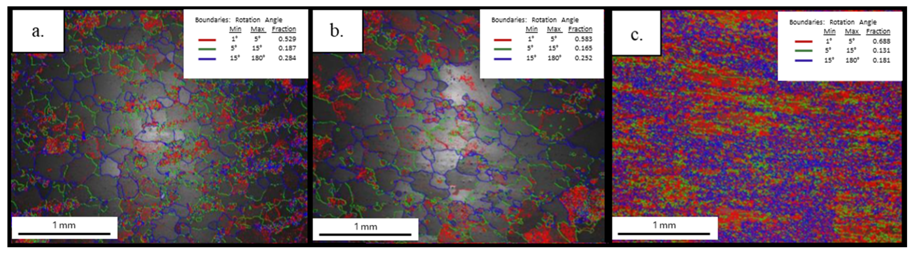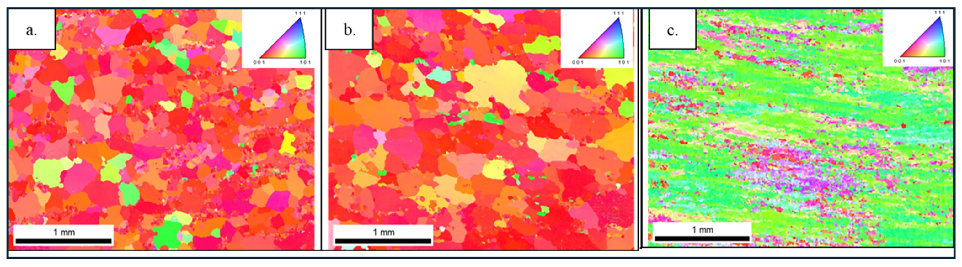 3.3.3. Electron Backscatter Diffraction (EBSD) Results