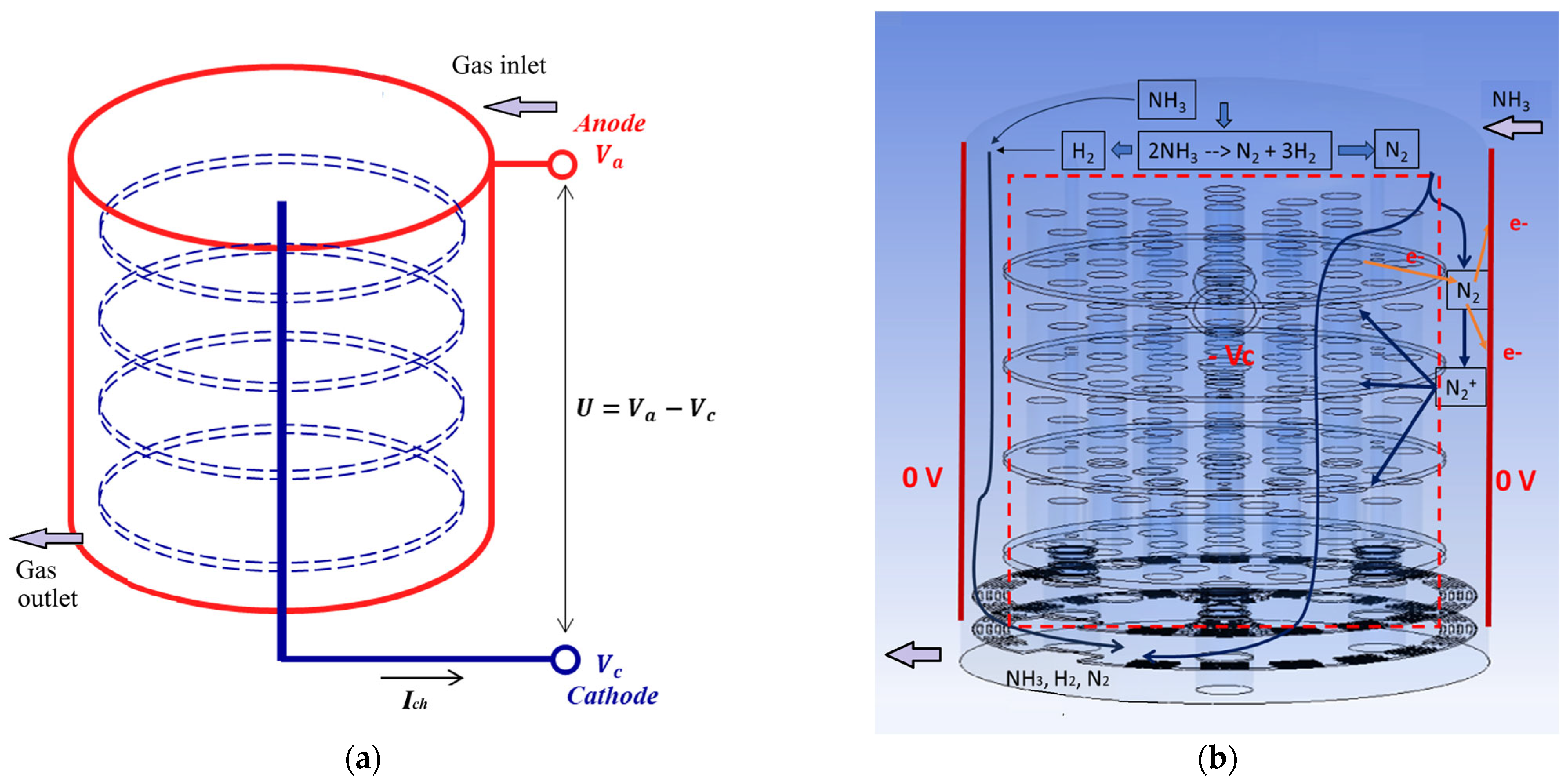 2 in the gases enhances the discharge current and increases the diffusion rate of nitrogen as a catalyst. Gaseous ammonia, which is chemically dissociated to N
