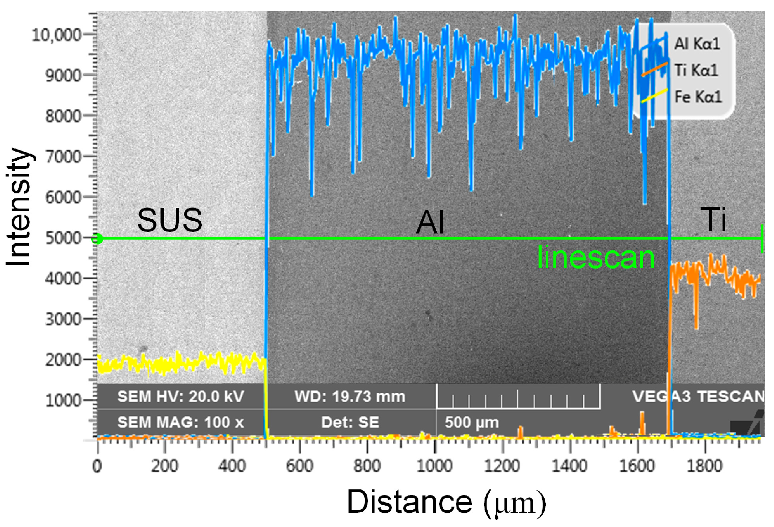 - Xiao, H.; Qi, Z.; Yu, C.; Xu, C. Preparation and properties for Ti/Al clad plates generated by differential temperature rolling. J. Mater. Process. Technol. 2017, 249, 285–290. [Google Scholar] [CrossRef]