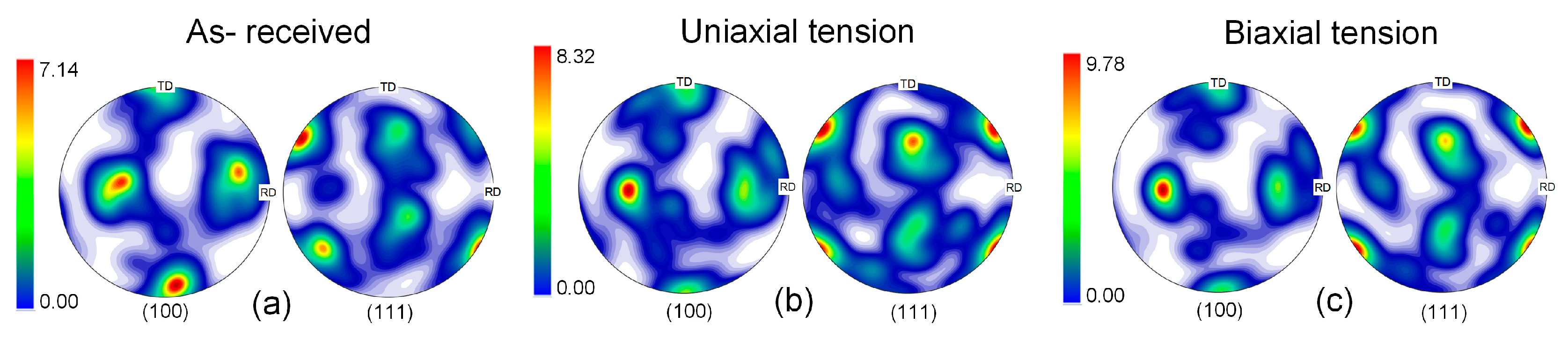 - Hajian, M.; Assempour, A. Numerical study on the effects of main BCC rolling texture components on the formability of sheet metals. Int. J. Adv. Manuf. Technol. 2015, 80, 245–253. [Google Scholar] [CrossRef]