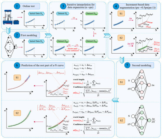 Then, two DA approaches and ML modeling strategies based on incremental information were used, to enable the extrapolation prediction of late-stage crack length on the a-N curve. These are designated as S1 and S2, as shown in Figure 2.