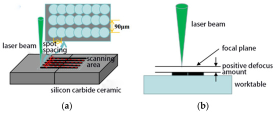 Schematic diagram of laser-modified SiC ceramic. (a) Scanning strategy. (b) Positive defocus processing.