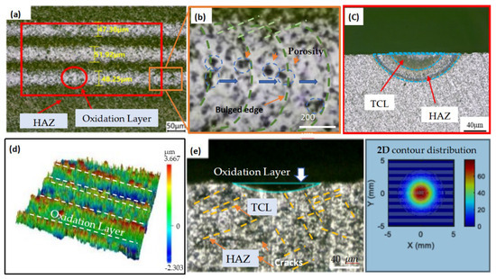 - Temmler, A.; Braun, K.; Uluz, E. Heat accumulation and surface roughness evolution in CO2 nanosecond laser ablation of quartz glass. Opt. Laser Technol. 2021, 144, 107426. [Google Scholar] [CrossRef]