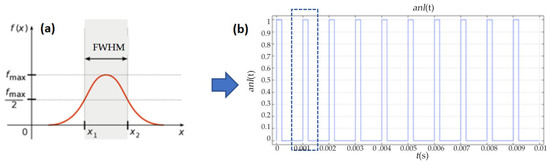 Characteristics of the laser source. (a) The time span of a Gaussian pulse. (b) The waveform of the square wave function.