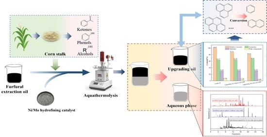 (3) During the coupled upgrade process, hydrothermal liquefaction products of corn stalk (phenols, ketones, alcohols, etc.) generated active hydrogen via catalysis by the Ni/Mo metal sites, thereby capturing the free radical fragments produced from FEO cracking, effectively inhibiting secondary polycondensation reactions and realizing the hydrocracking of condensed aromatics and quality improvement of FEO.